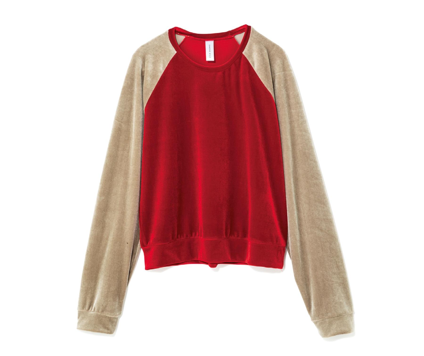 カジュアルなTシャツをベルベット素材でほどよくドレスアップ