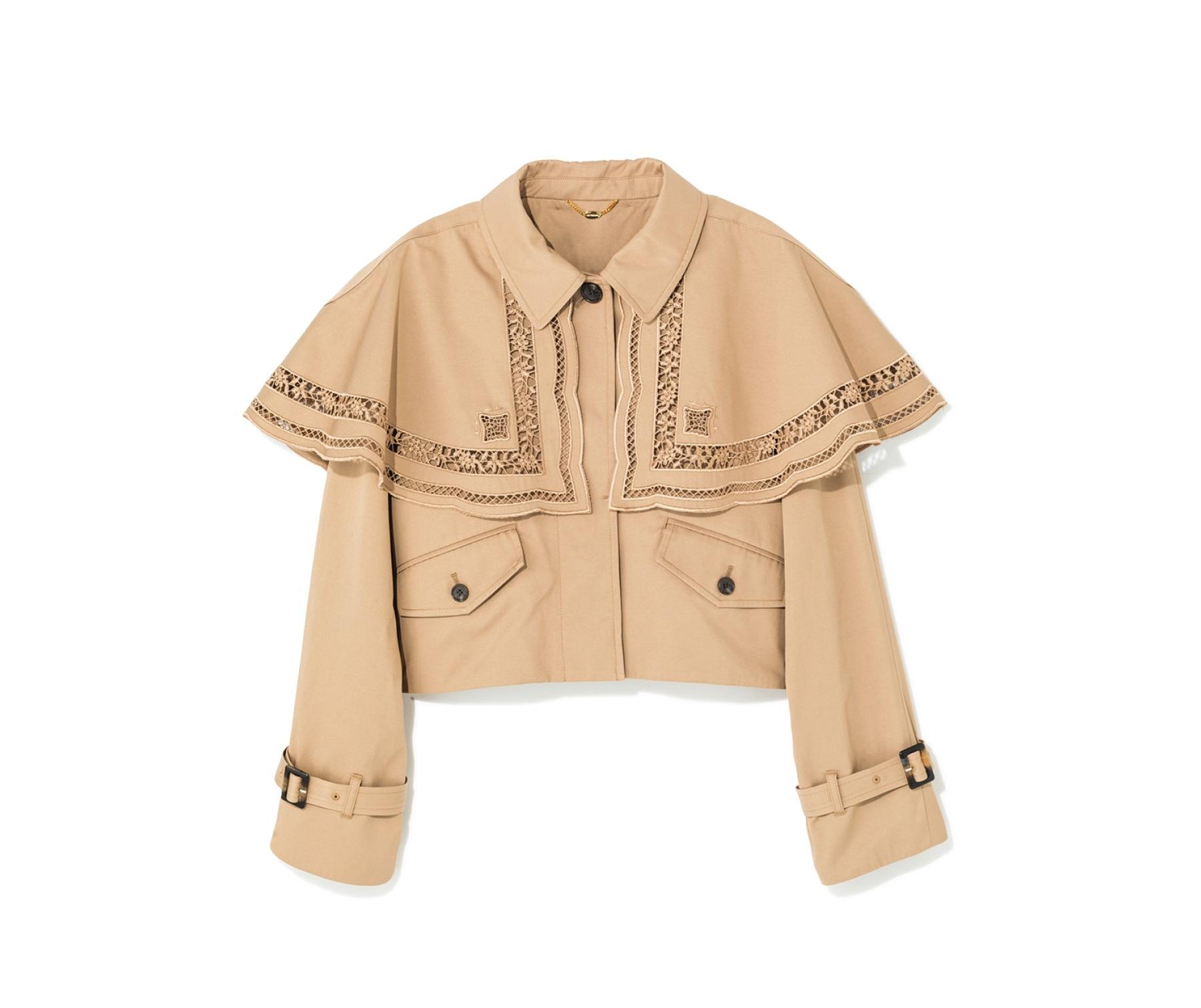 2WAYで楽しめるコートは、ケープを外すことで少しシックな表情に変化する。ボトムスとバランスがとりやすい、ショート丈も嬉しい。¥31,900(リリー ブラウン/リリー ブラウン ルミネエスト新宿店 TEL. 03-6457-8555)