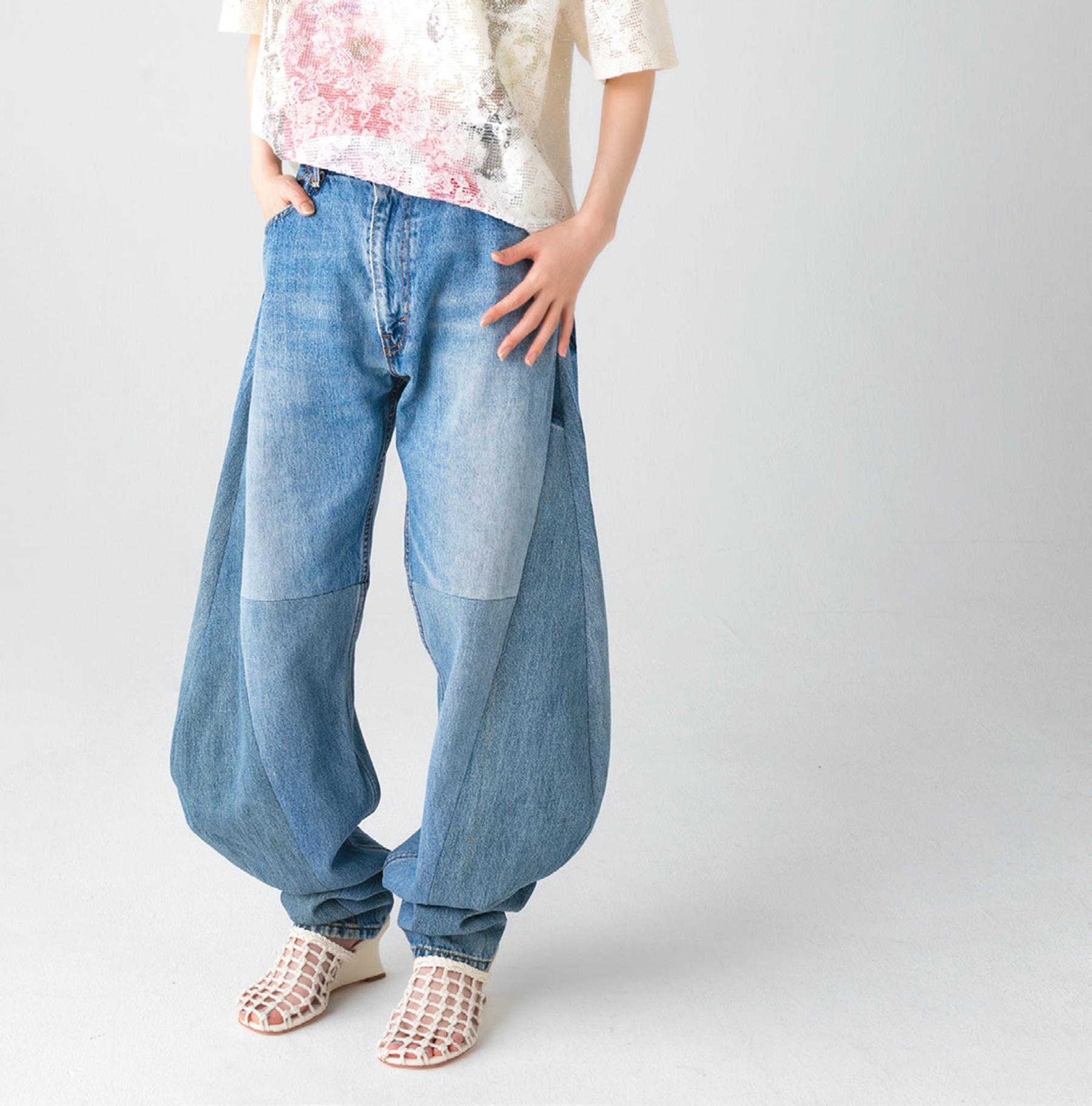 動きやすいルーズシルエットにハードなウォッシュ加工が特徴のペインターパンツ。Tシャツに合わせてカジュアルに着こなすのはもちろん、あえてきれいめのシャツやブラウスに合わせても、こなれた表情に仕上がる。パンツ ¥26,400(リー/エドウイン・カスタマーサービス TEL. 0120-008-503) ブラウス ¥33,000(ロエフ/エイチ ビューティー&ユース TEL. 050-8890-9491) ミュール ¥20,900(モリーニ/ジャック・オブ・オール・トレーズ プレスルーム)