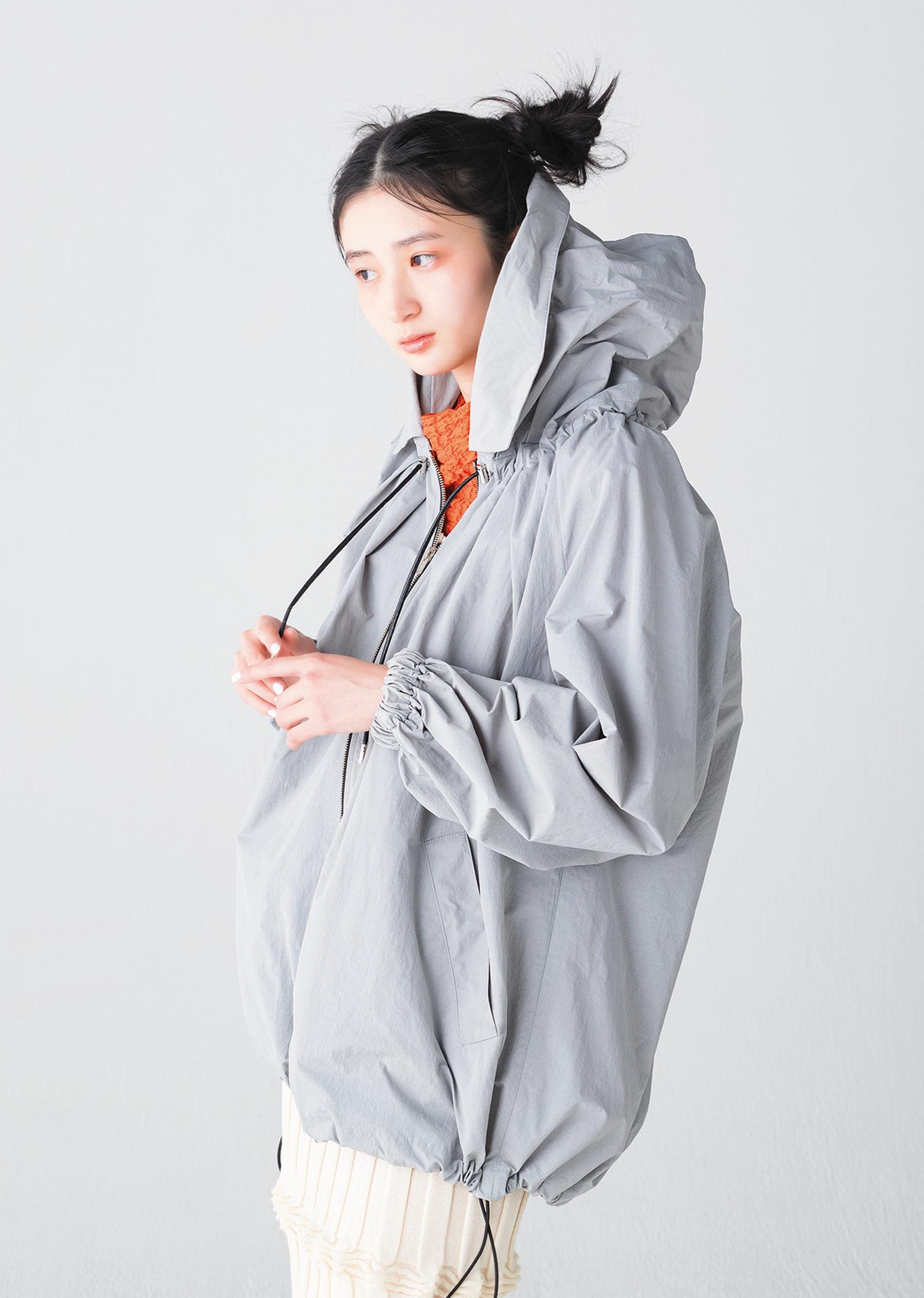 軽量でシワになりにくい高密度のナイロン素材。ドローコードによる胸元のドレープもエレガント。ブルゾン ¥68,200(CINOH/MOULD TEL. 03-6805-1449) スカート ¥41,800(OPEN SESAME CLUB) トップス ¥19,800(PHEENY TEL. 03-6407-8503)