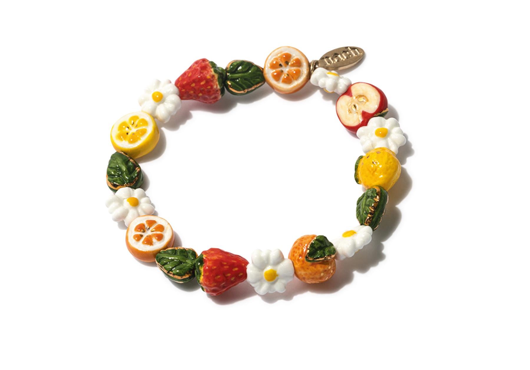 動物モチーフのアイテムが有名なブランドから、フレッシュなブレスレットが登場。イチゴやリンゴ、レモンなどの果物が並ぶ愛らしい姿にキュン♡ ¥19,800(ナッシュ/アッシュ・ペー・フランス)