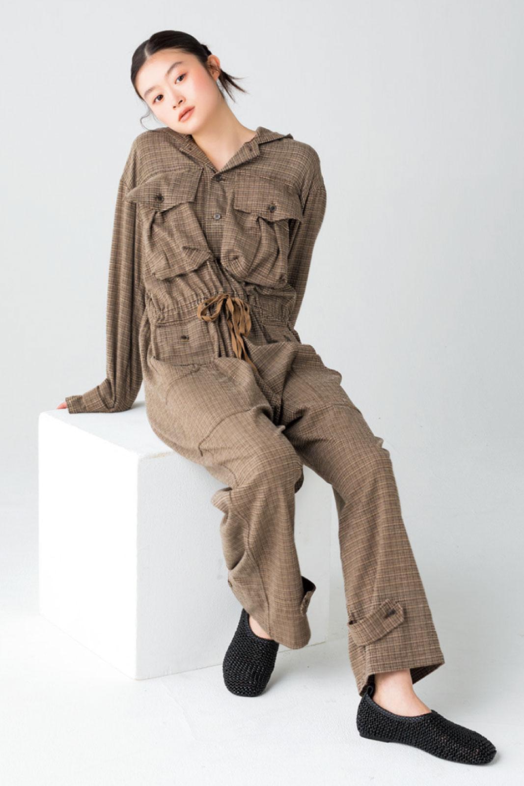 ② ブラウンのチェック柄が大人の可愛さを引き立てる