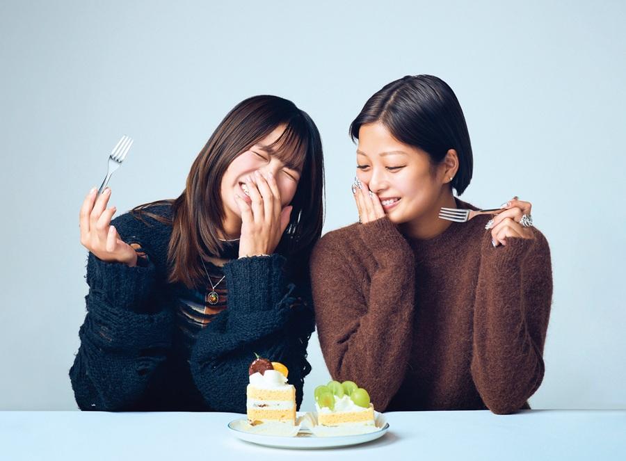 右・カナカ 1999年1月14日生まれ。ブランドディレクター。左・朝日ななみ(あさひ・ななみ) 1999年1月22日生まれ。俳優、タレント。二人とも大のお酒好き。食の好みもピッタリで、宅飲みを楽しむことも。二人の韓国での食旅は「Kanaka/カナカ」チャンネルで公開中。