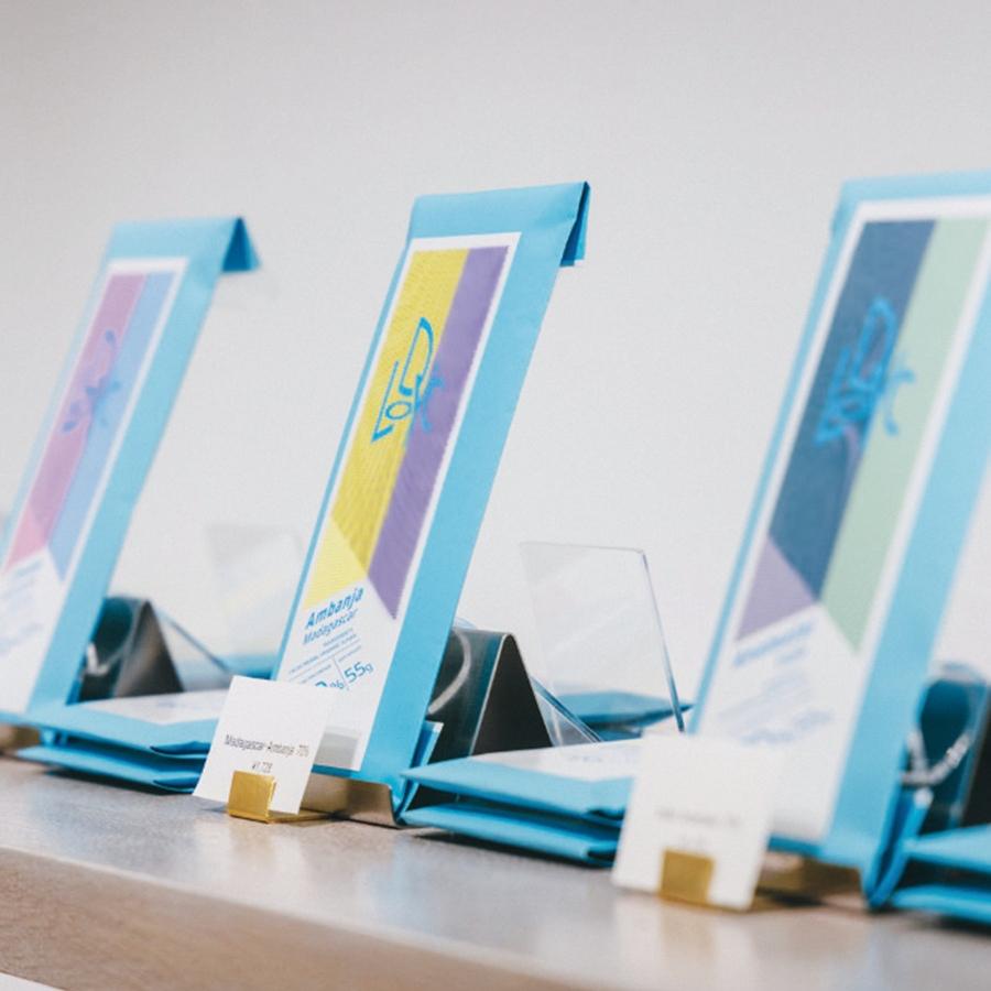 2025年10月オープン。プロダクツごとにカカオ豆を選び、焙煎、コンチングを変える独自製法で香りを引き出してチョコレートに。タブレットやボンボンショコラのほか、生菓子や焼き菓子も。