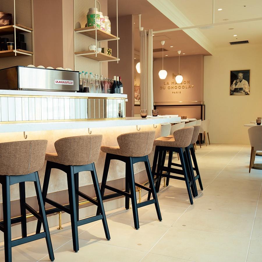 1977年創業、パリのラグジュアリーショコラメゾンとして有名な『ラ・メゾン・デュ・ショコラ』。ブランド内で世界初のカフェやバーカウンターを併設し、“ショコラの可能性を追求した新しい味覚体験”をテーマに、チョコレートを主役にしたこれまでにないメニューを楽しめる。