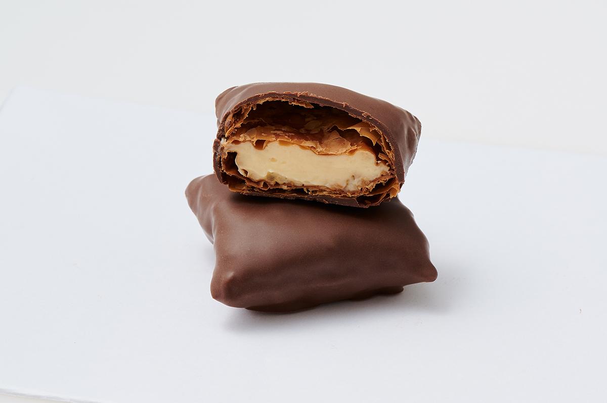 チョコをまとったパイ生地のお菓子。