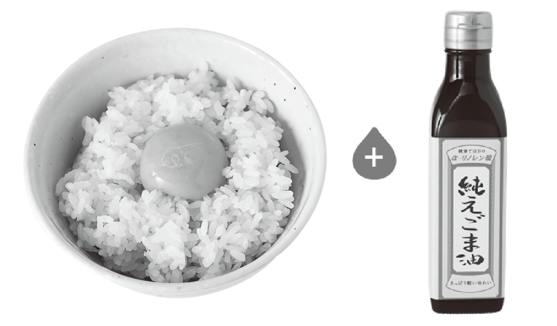 ④ 卵かけご飯+エゴマ油