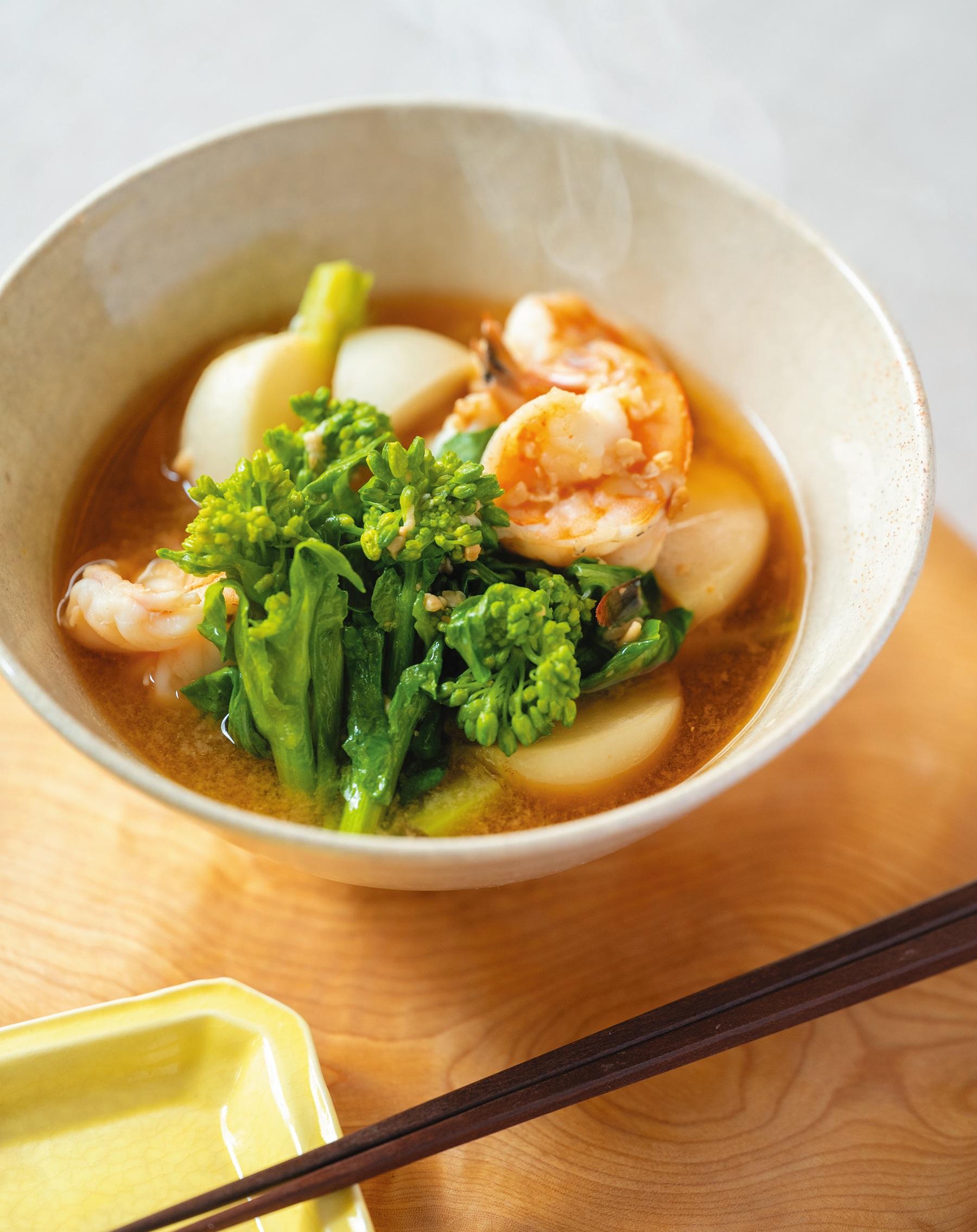 レシピ②|カブとエビ、菜花のみそ汁