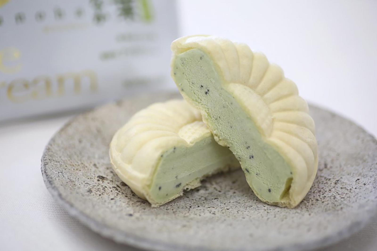 「松崎冷菓」の「自然派PREMIUM 茶の葉アイスもなか」300円(参考価格)。公式サイト