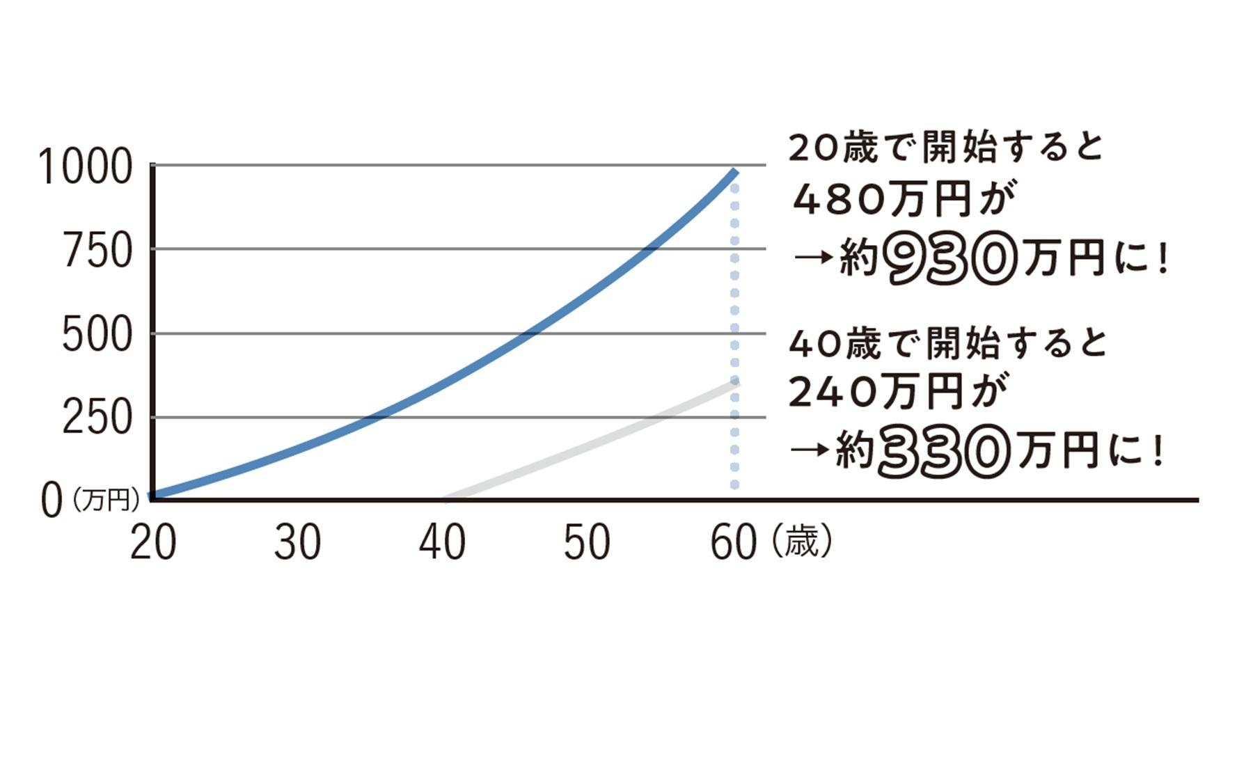 20歳で開始すると480万円が→約930万円に!