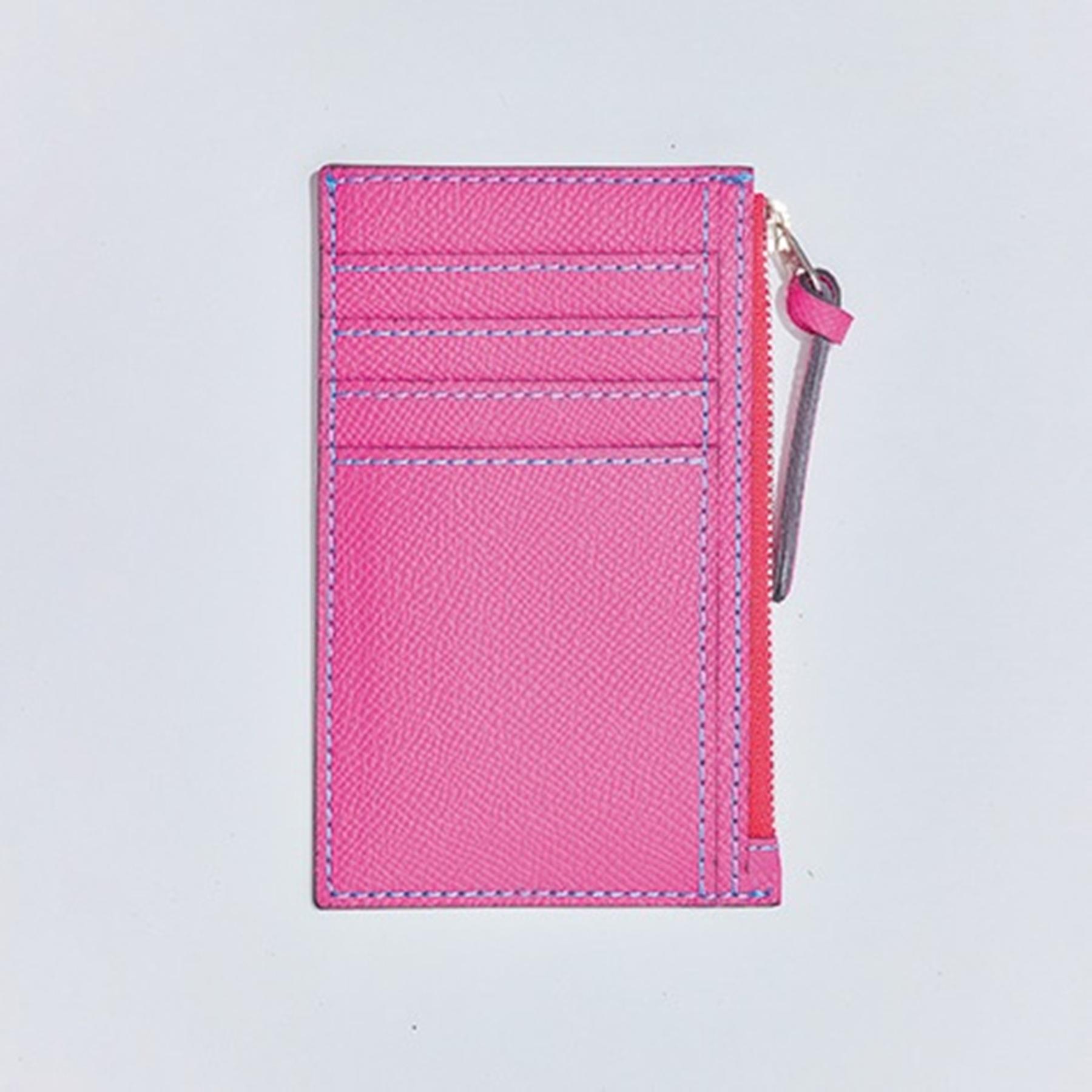 ジップ式のコインポケットは中に仕切りがあり、小銭もたっぷり入る。表面のカードスロットは3段で、マルチカラーのためカードが区別しやすく、出し入れもスムーズ。取り外し可能なキーチェーン付き。W8×H11×D1.5cm¥8,100(マイワリット/渋谷ロフト TEL:03・3462・3807)