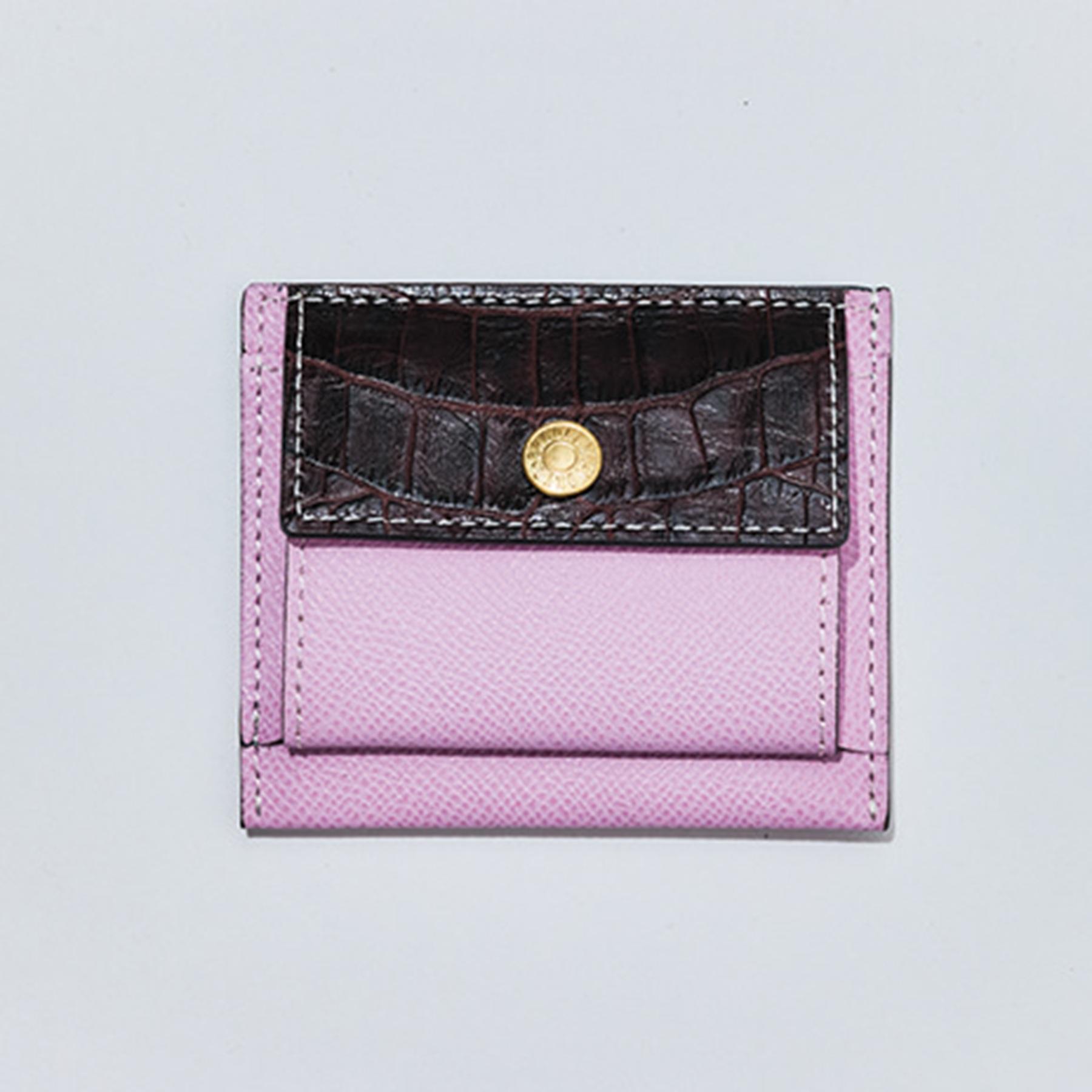 内側に3段のカードスロットを2つ備えた三つ折りウォレット。外側にはボックスタイプのコインポケットがあり、財布を開かず小銭が取り出せる。パステル調のカラーや丸みのあるフラップのデザインもかわいい。W9.5×H8×D3cm¥36,300((Epoi)/(Epoi)本店 TEL:03・5843・1621)