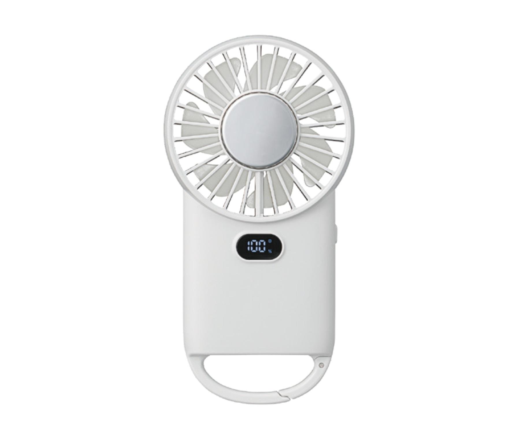 ファン中央の丸い部分に、ペルチェ式の冷却プレートを搭載した画期的なモデル。「プレートを首元や顔に当てるとひんやり気持ち良く、ピンポイントでクールダウンできます」。デジタルディスプレイで、充電残量が一目瞭然。¥2,981(コイズミ TEL:0570・07・555)