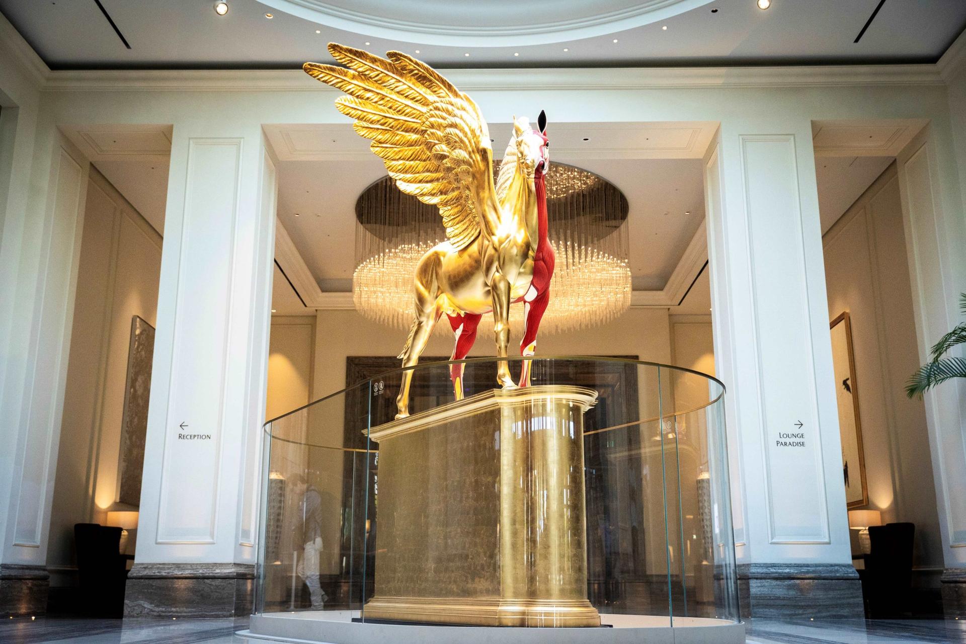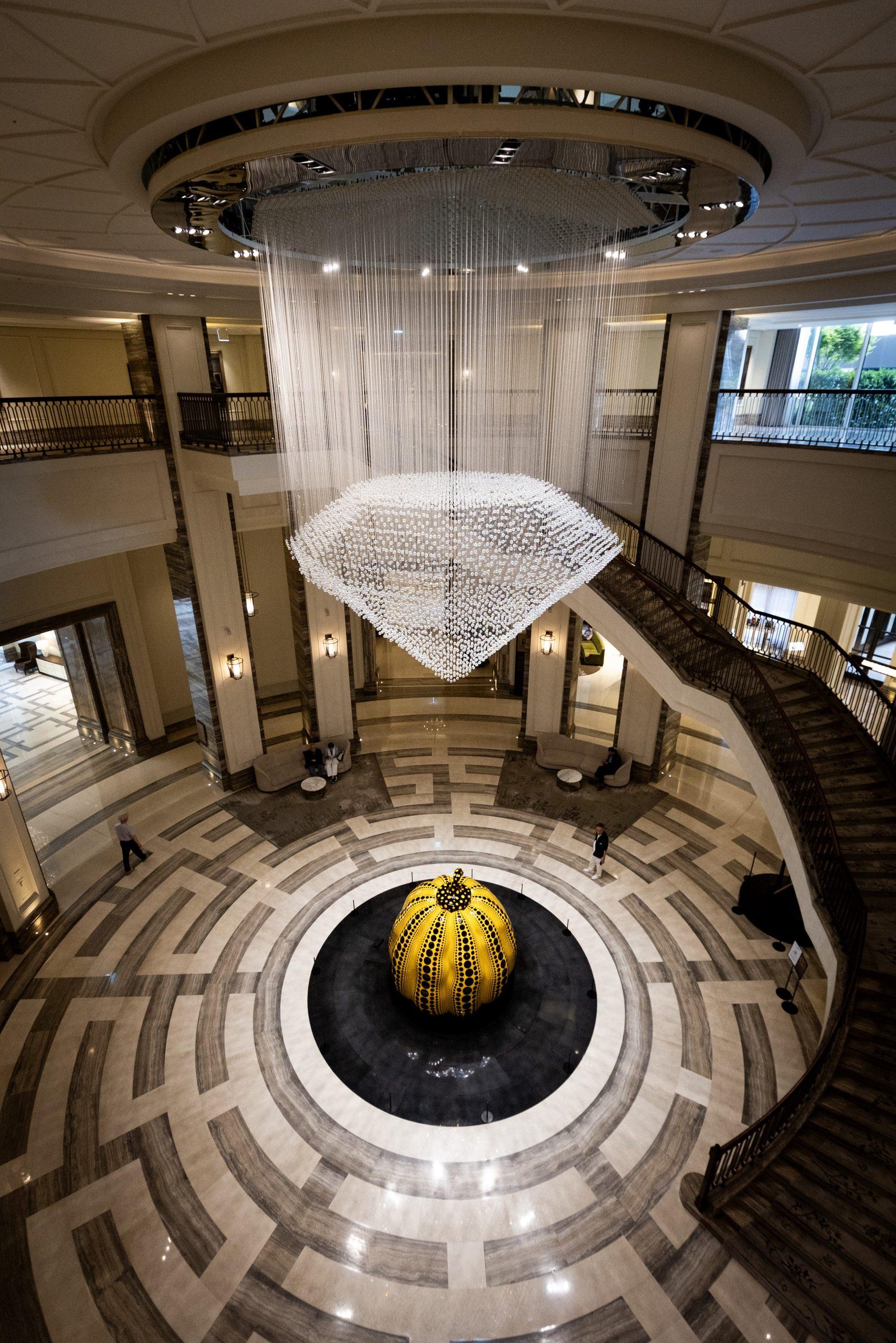 入るなり現れる草間彌生の巨大カボチャ、その先に現れる半身金箔のペガサスの作者はダミアン・ハースト…そしてそれらアートピースにふさわしい美術館顔負けの空間。天井も高く、アートピースに合わせた照明があてられ、普段見れないような距離感で存分にアートを堪能できる。アート好きじゃなくても目の保養になること必至!?