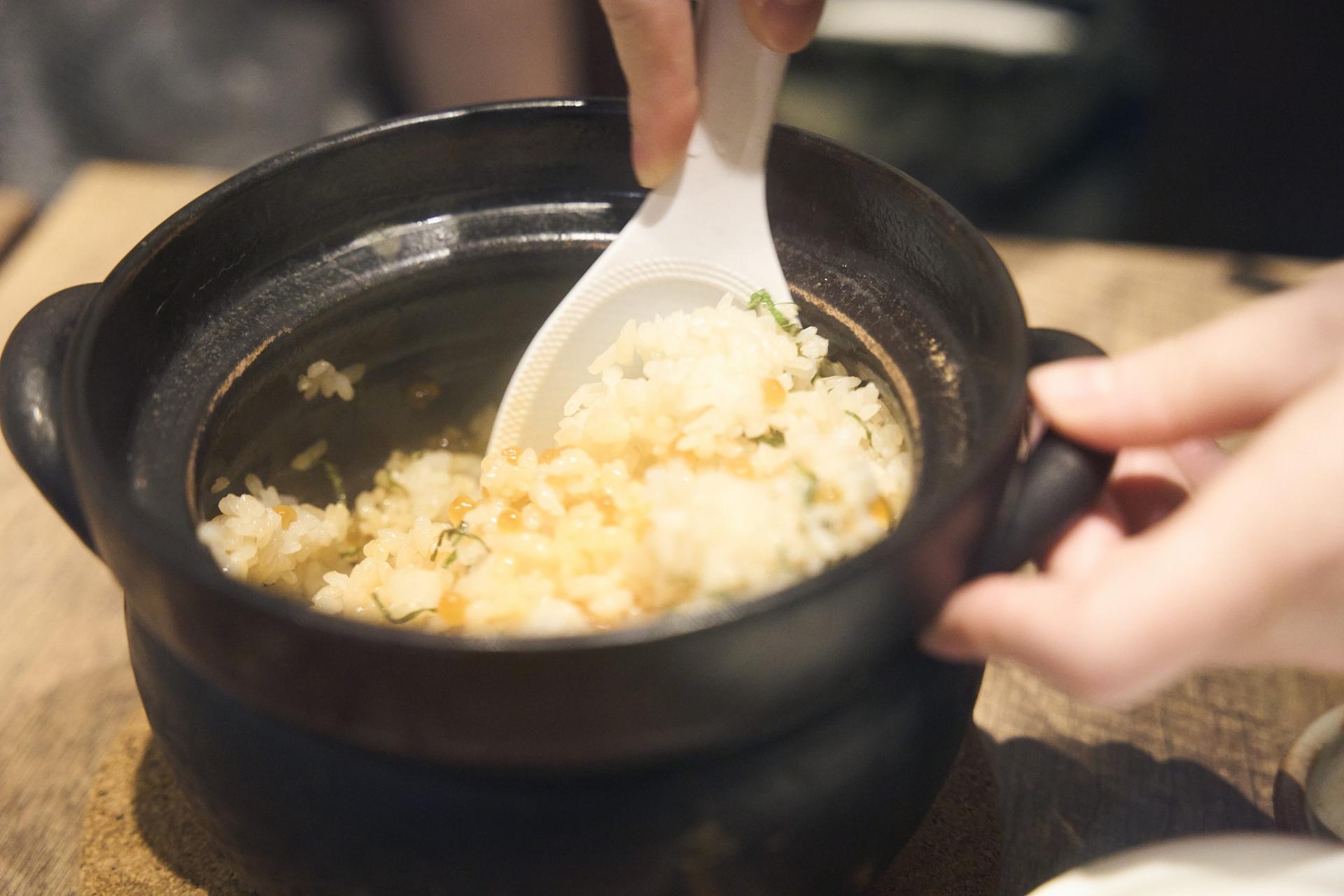 うにといくらの土鍋ごはん(3900円)。シソの香りが食欲をそそる…! いい匂いすぎる。いくらが光ってる…。byなかしー