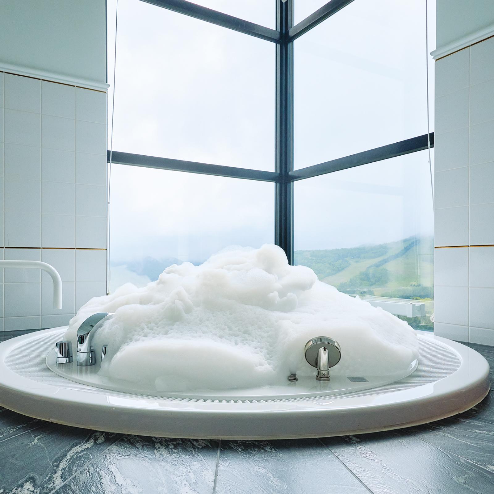 全室が100平方メートル以上のスイートルームで、展望ジェットバスとプライベートサウナを完備。シックな「デザインスイートツインルーム」や、雲海のデザインに囲まれた「雲スイートルーム」、愛犬と一緒に宿泊可能な「愛犬スイートルーム」など、5つのタイプを用意。またレストラン『OTTO SETTE TOMAMU』や、24時間利用可能な『Books&Cafe』など、ホテル棟の施設も充実。