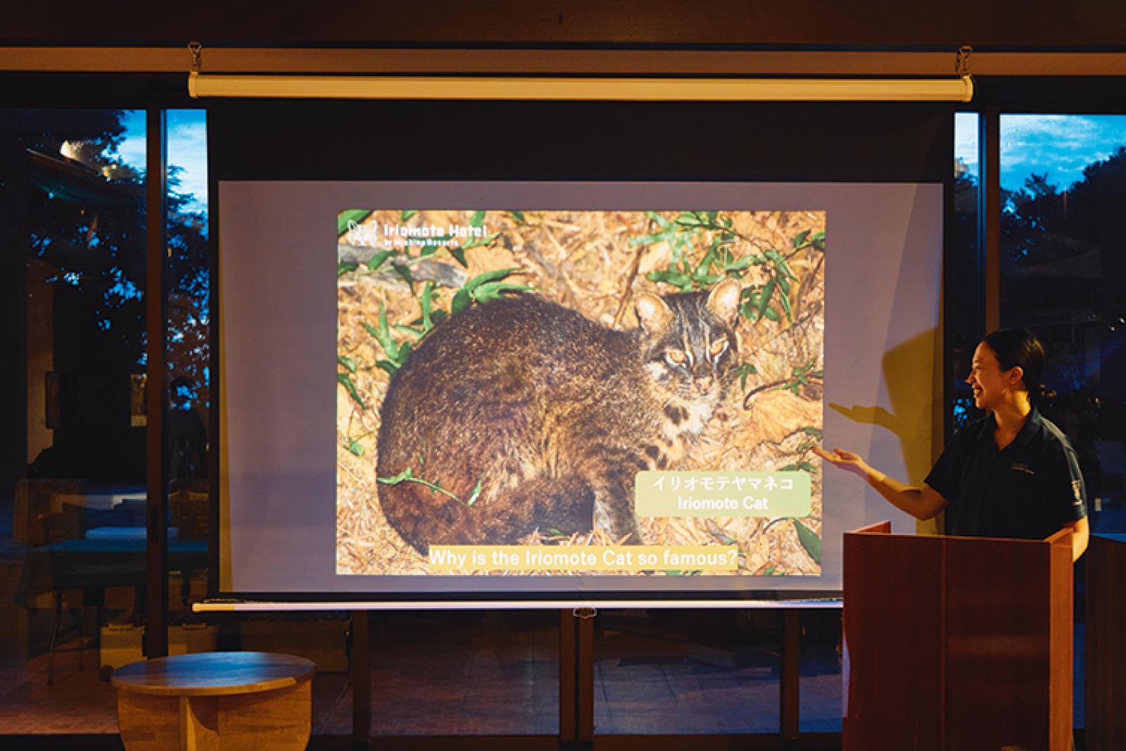 敷地内のジャングルや月ヶ浜、マングローブ群をホテルスタッフがガイドする「イリオモテガイドウォーク」(45分)。その他、希少動物について学ぶ「世界遺産の学校」(隔日19:30~30分 ※時期により変動あり)など無料の学習イベントも開催。