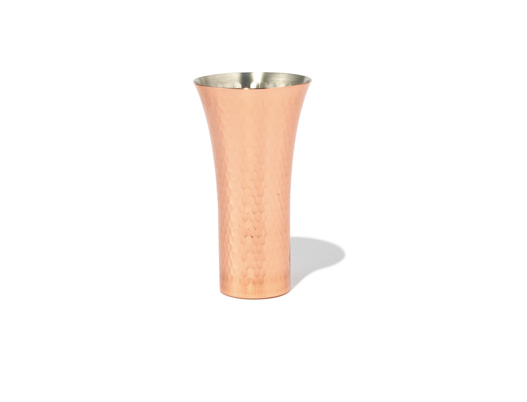 高い保冷性を持つ銅を使ったビアカップは、冷えたビールを注ぐとすぐ同じ温度まで下がるので、冷たいまま飲み続けられる。重厚感のある佇まいで、視覚的にも美味しさがアップ。