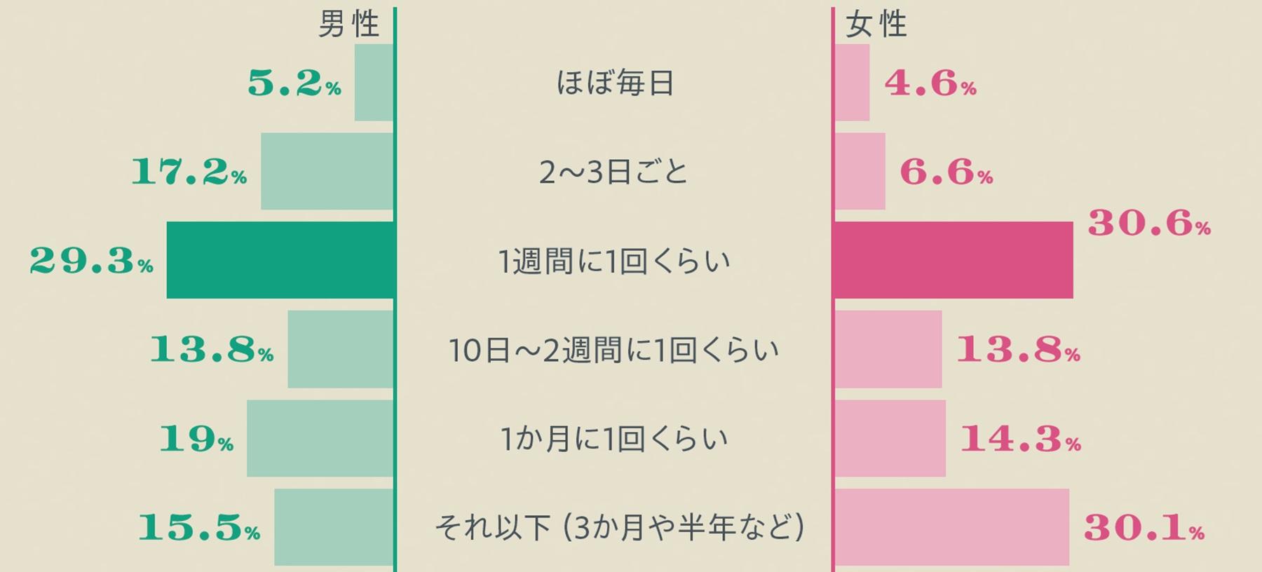 【2~3日ごと】男性…17.2%、女性…6.6%