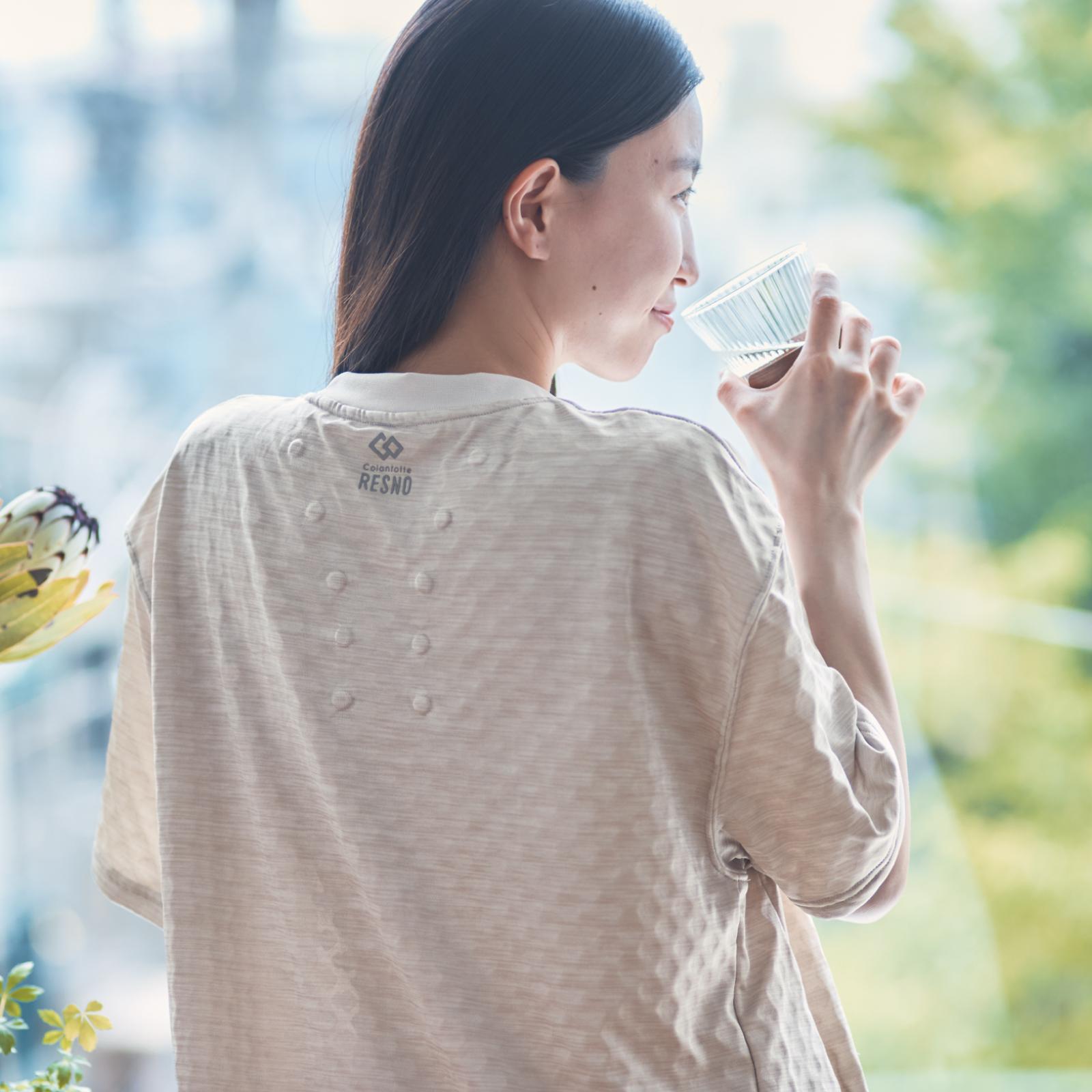 睡眠時の血行を促進し、コリを改善するリカバリーウェア。肩甲骨と仙骨に沿う位置に磁石を配することで、血流を巡らせてコリにアプローチし、心地よい睡眠環境をサポートする。管理医療機器認証取得だから安心。杢ベージュ、杢グレーの2色展開。トップス、ボトムスともにロングタイプもあり。 ショートスリーブ¥9,900 ハーフパンツ ¥9,900
