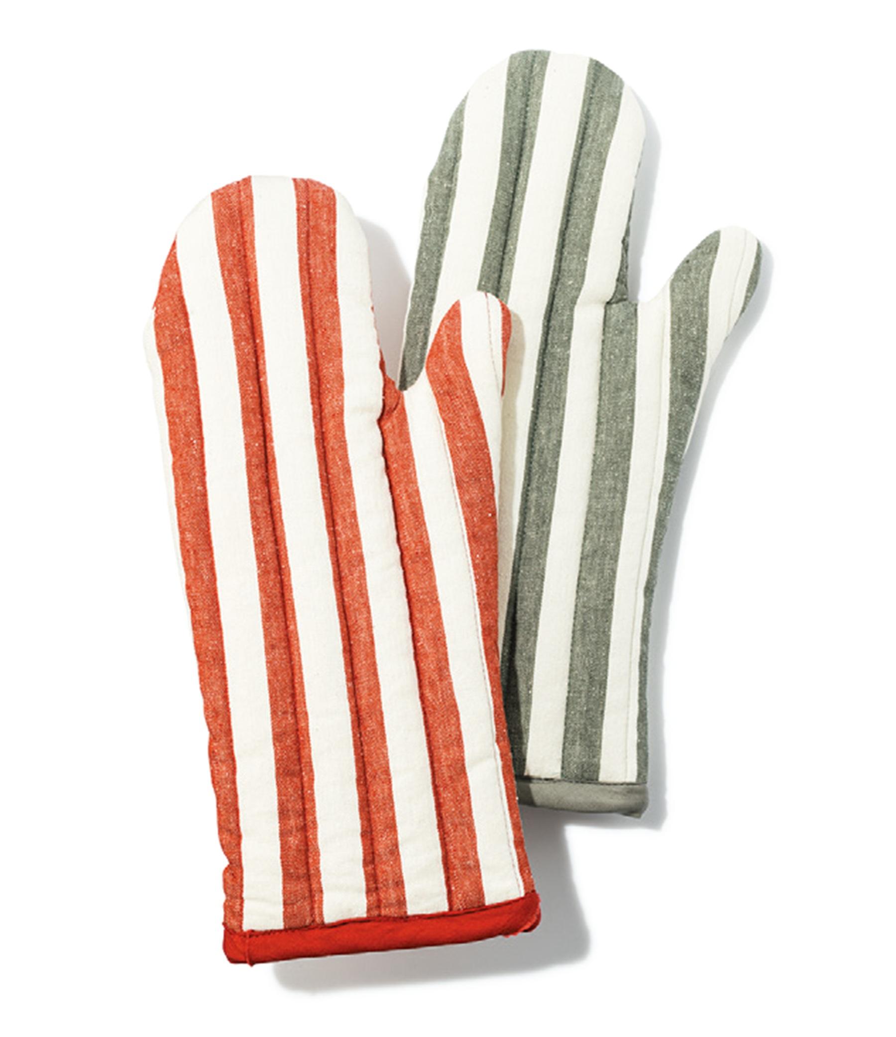 コットンリネンの糸をしっかり織り上げた平織り生地を採用。手首まですっぽり隠れる大きめサイズで、鍋から上がる蒸気などから肌をしっかり守ってくれる。