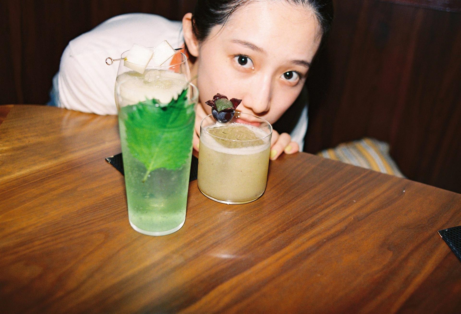 (写真奥から時計回りに)和梨のフレッシュカクテル(1,700円)、巨峰のフレッシュカクテル(1,600円)、大葉のジントニック(1,200円)。果物そのままのようなフルーティーな香りと、すっきりとした味わいで、涼やかな気分に。フルーツカクテルに負けない大葉のジントニックの清涼感も魅力的...!