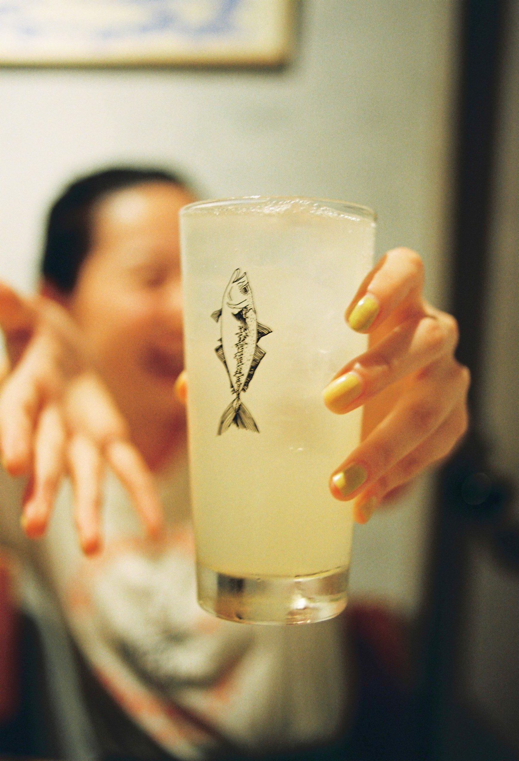 五反田駅から徒歩6分。西五反田エリアの地下に構える酒肴あおもん。青魚料理を中心に、山椒の効いたおつまみなど、お酒が進むラインナップ。写真は、たてみち屋レモンサワー(638円)。