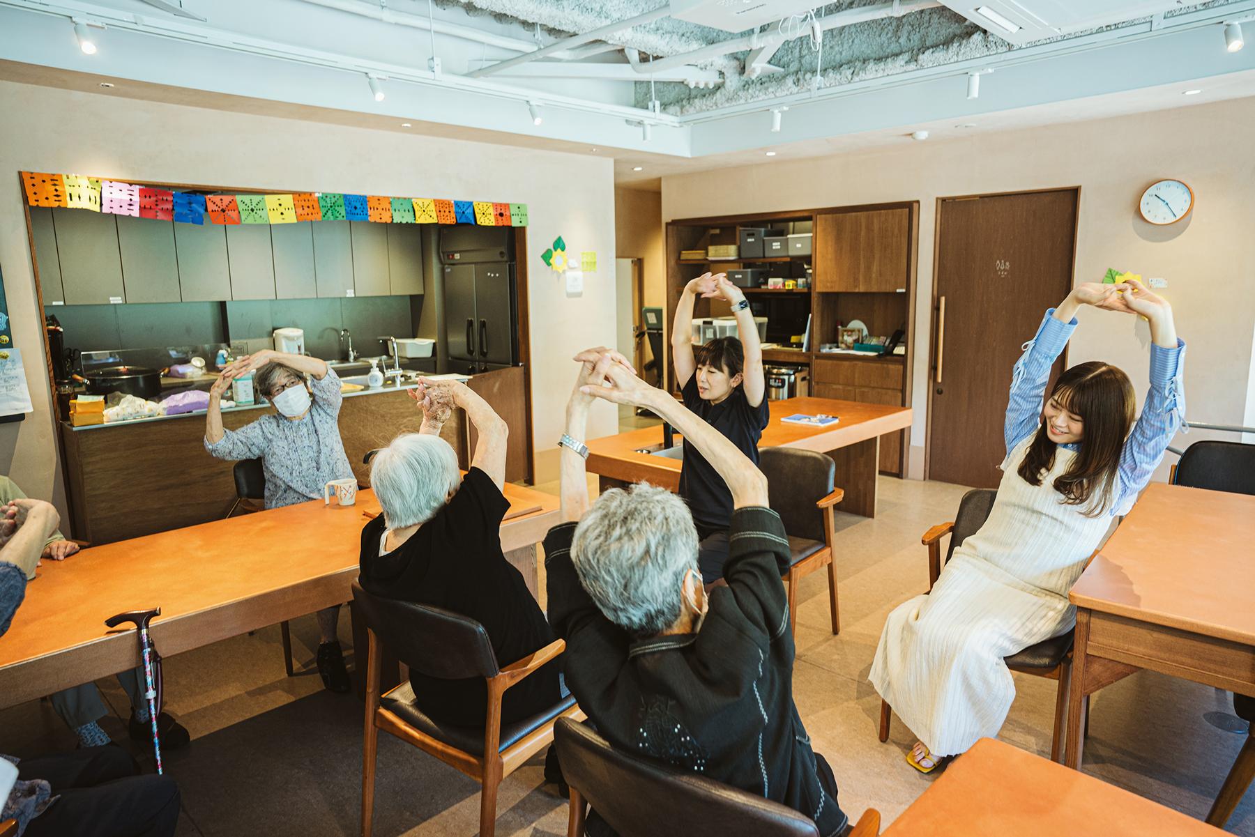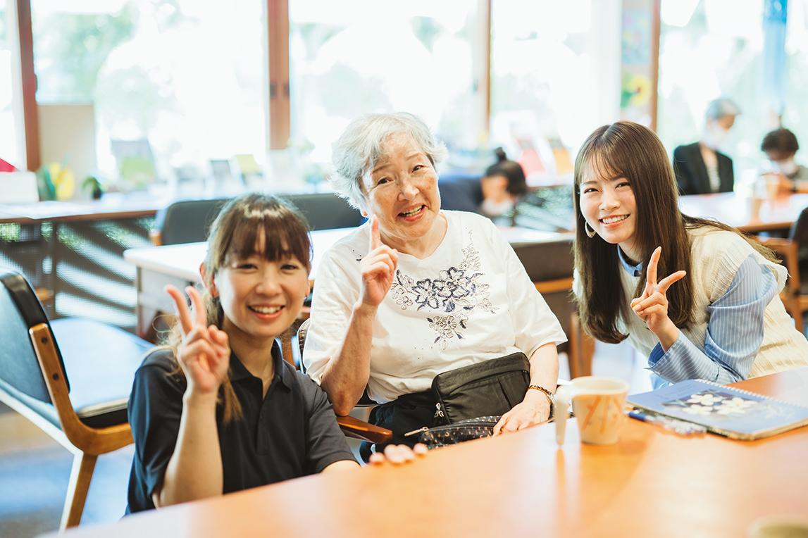 レクリエーションでは、難読漢字クイズの出題や、体操で体を動かして一緒に楽しみました。みなさん真剣に取り組んでいて、私もついつい熱が入りました! 世代を超えて人と人が気軽に触れ合える場所があるってとても素敵なこと。ここにはどんな方でも本が借りられる『エンミチ文庫』という私設図書館も併設されているので、私も通ってしまいそう。介護を身近に感じることもできるし、こういう複合型の施設がもっとたくさん増えてほしいですね」