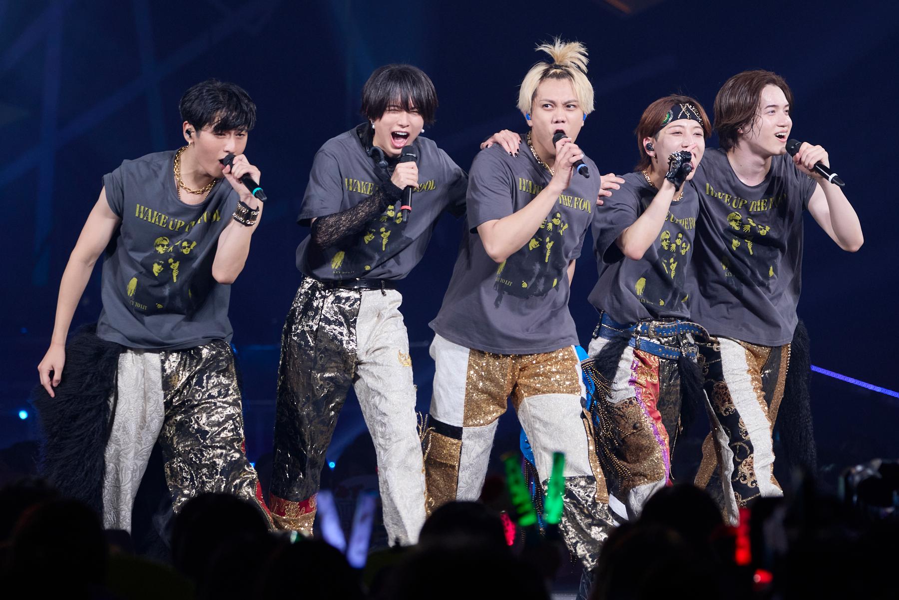 疾走感溢れるハードナンバーでボルテージを加速させた後、「ららアリーナ、愛し合う準備はできていますか? 結成したばかりの僕たちですが、まだ何者でもない、そういった状況です。ただここからトップスピードで、アクセルベタ踏みで天下を取りに行くぞ、そういった想いで『WAKE UP THE FOOL』というタイトルを付けました。今から2時間、ここららアリーナ、世界一熱い空間を作っていきましょう」とタイトルに込められた想いを語ったのは、中村嶺亜さん。