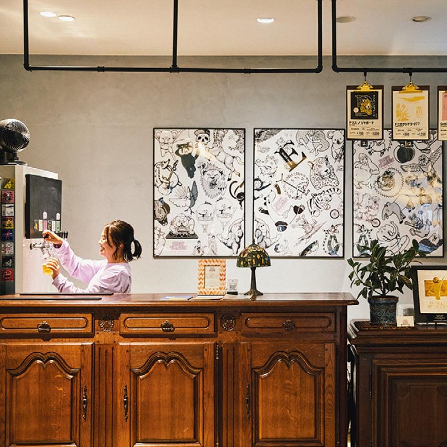 仕込みの度に新鮮な液体酵母を使うクラフトビールは、雑味のない繊細でクリアな味わいが魅力。ビールは月替わりで常時6種類を揃えるが、クラフトビール界のオリンピックといわれるWorld Beer Cupで2023年に金賞を受賞した「ドリス ノ ジャガー ヲ」はシグネチャー。