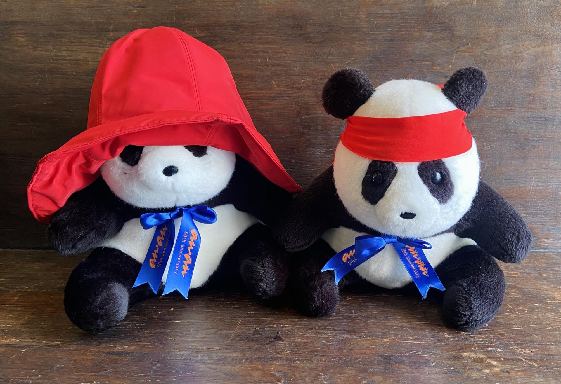 赤えんぴつとは、バナナマン設楽さんと日村さんがコント内で演じているフォークデュオ。設楽さん演じる赤いチューリップハットをかぶった❝おーちゃん❞と、日村さん演じる赤いハチマキがトレーマークの❝ひーとん❞の二人組です。こちらはお二人になりきってノリノリで仮装中のananパンダたち。