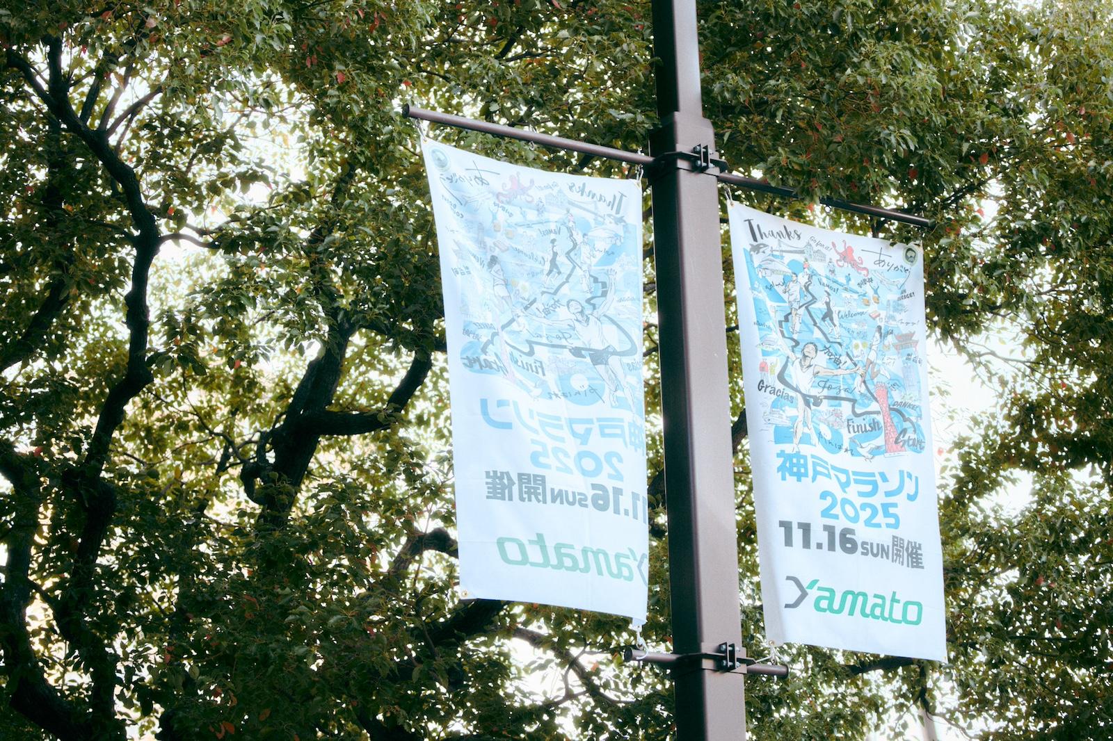 沿道にはフラッグが並び、神戸の街はランナーを迎える準備万端