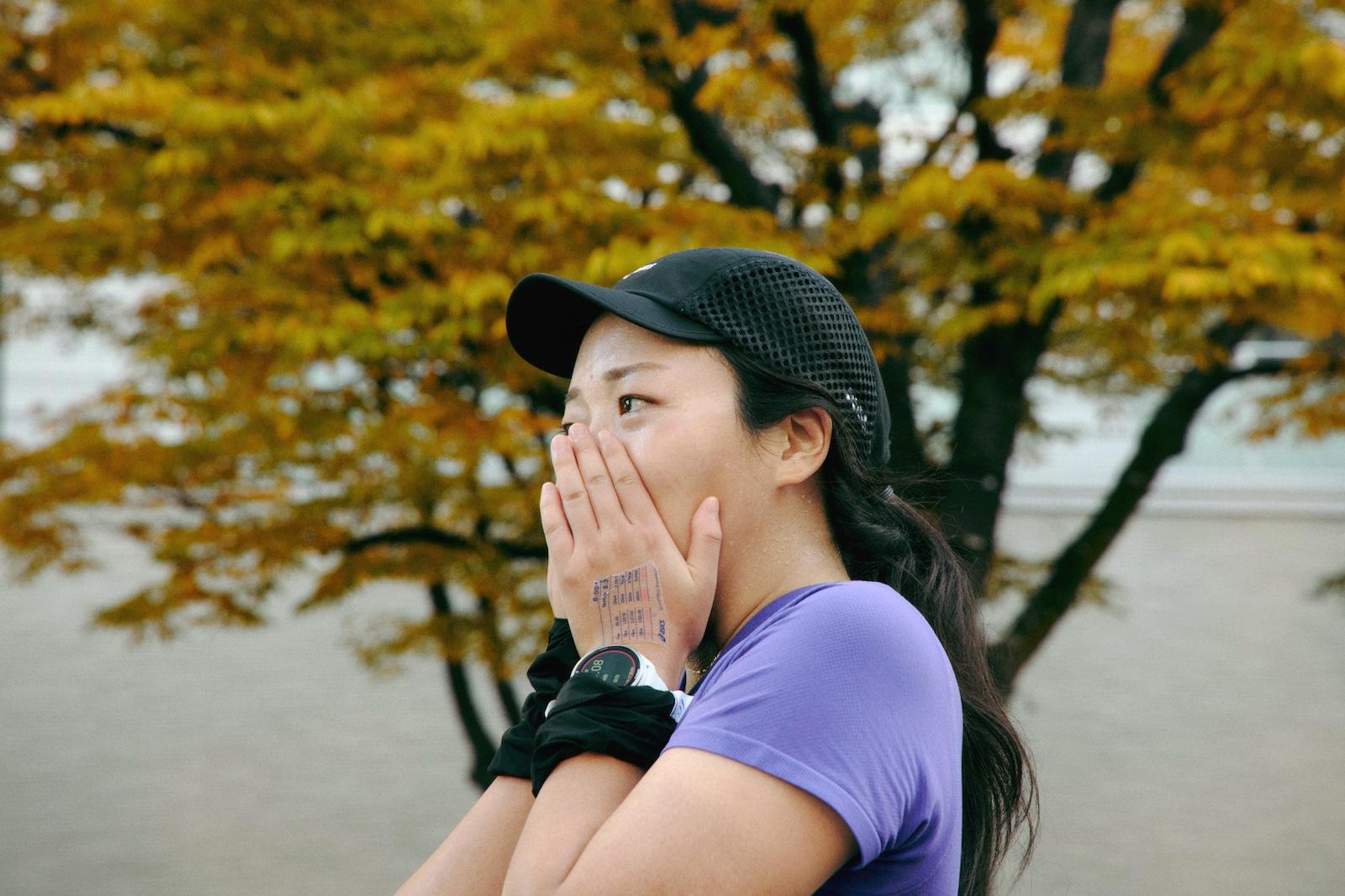 「なぜ泣いたのか、自分でもわからないんです。たぶん安心したからだと思います。終わってみて思うのは、フルマラソンって喜怒哀楽の爆発ですね。最初は楽しいって思いながら走っていたけど、途中から自分の思うようにならなくて、それでもいろいろ考えながら乗り越えて、最後は安心して。