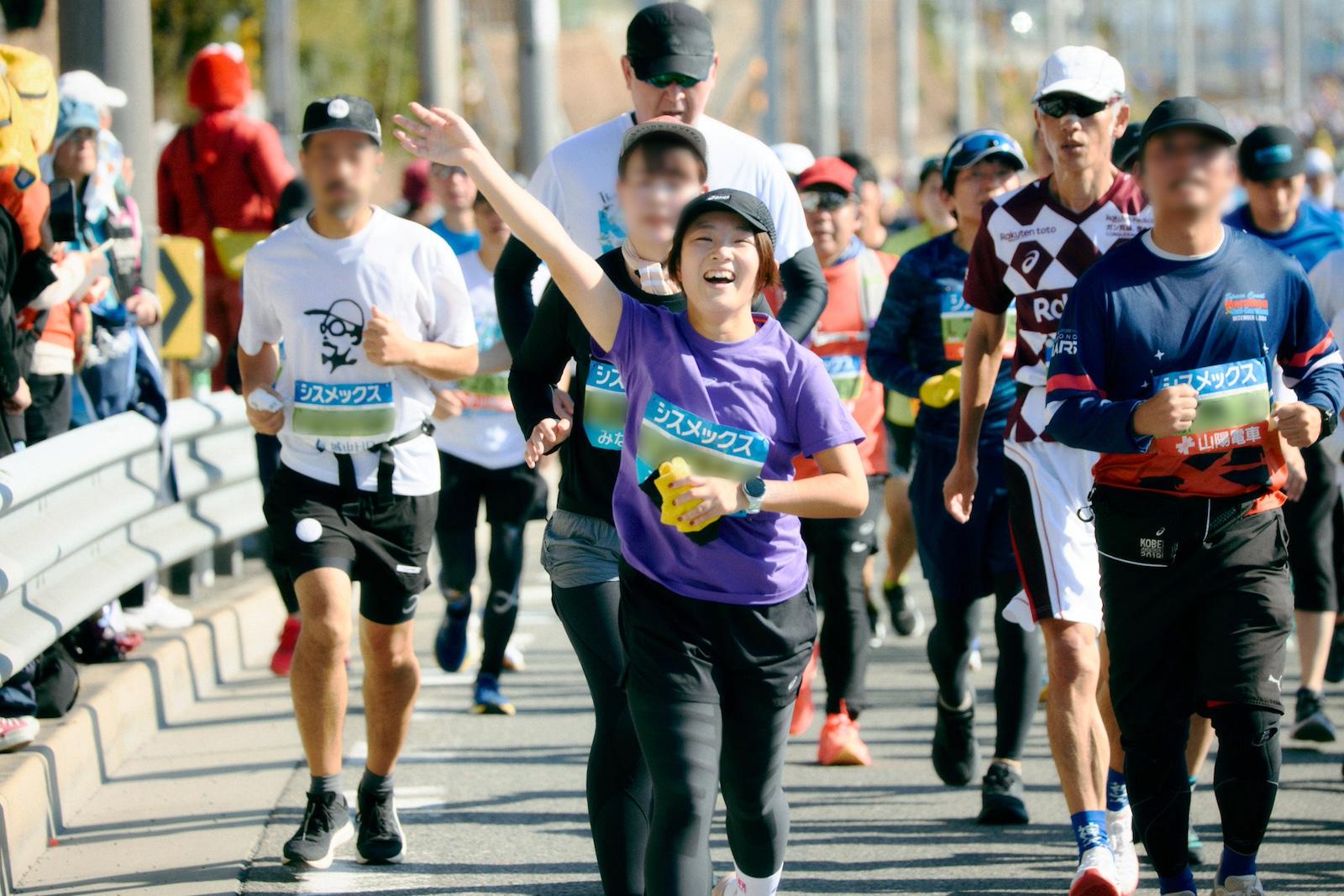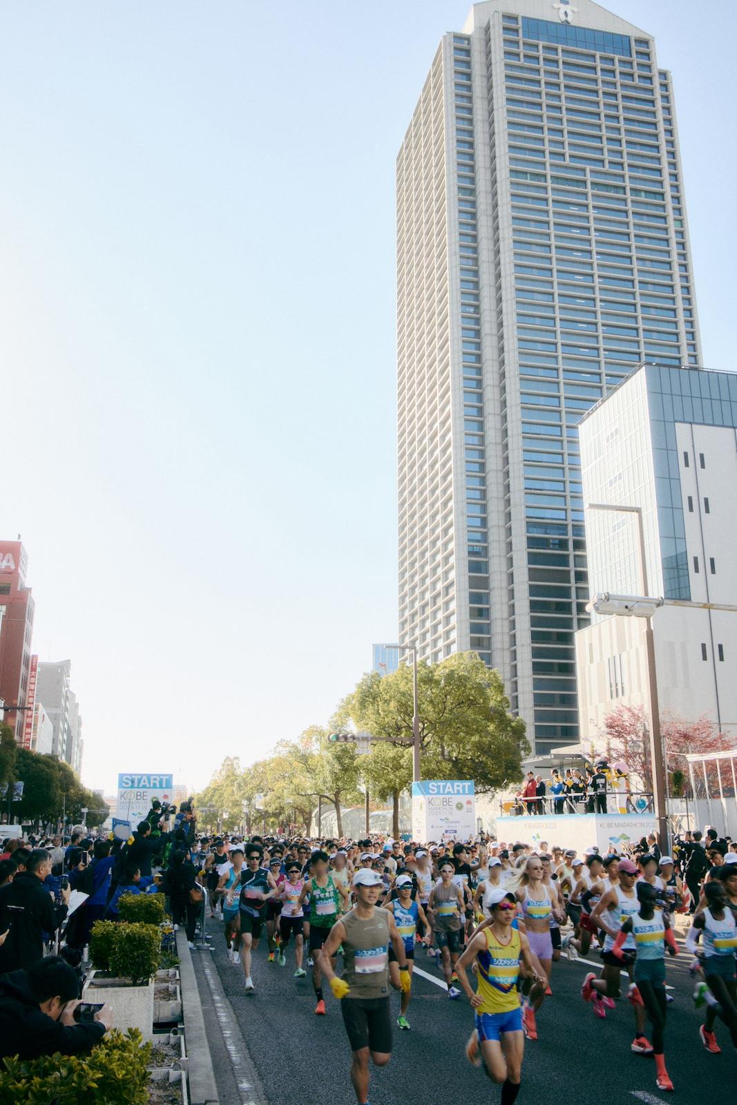 午前9時。スタート号砲を合図に、神戸市役所前から一斉に走り出したランナーたち。