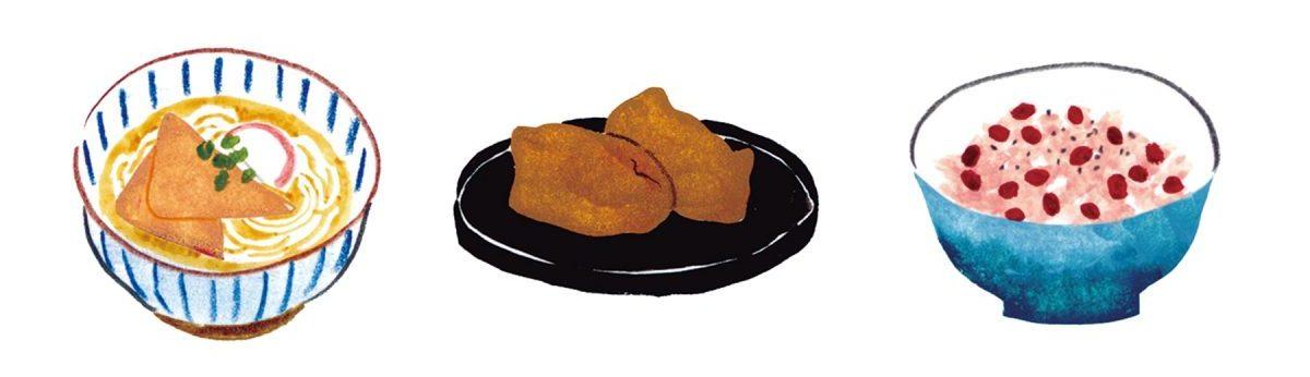 初午は稲荷大神と縁が深いことから、ラッキーフードは稲荷大神の使いとされる狐つながりのもの。「揚げはきつねの好物とされているので、きつねうどんは、まさにその一つ。初午に食べると商売繁盛、家内安全につながるといわれています。稲荷寿司は、揚げで米(五穀豊穣)を包むことから、福を包む縁起物。東北や北陸では、赤飯の赤い色がお稲荷さまの鳥居と同じ色ということで、初午のゲン担ぎフードに」