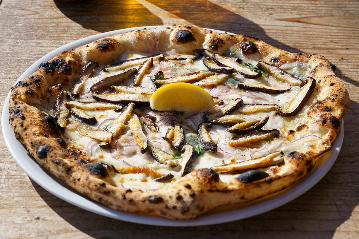 ほんのり酸味のある香り高く発酵させた生地と、オーナーが出合った「衝撃的に美味しい伊豆食材」を組み合わせたピッツァ。風味豊かなナチュラルワインも魅力。