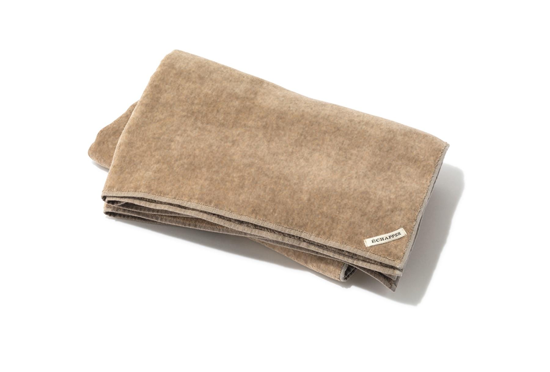 ソフトな肌触りのヤクの毛をコットンにブレンドした糸で織られたブランケット。漂白や染色を施さず、ヤク本来の美しい毛色を生かしたナチュラルな色合いも素敵。W100×H153cm ¥63,800(エシャぺ/エイトン青山 TEL. 03-6427-6335)