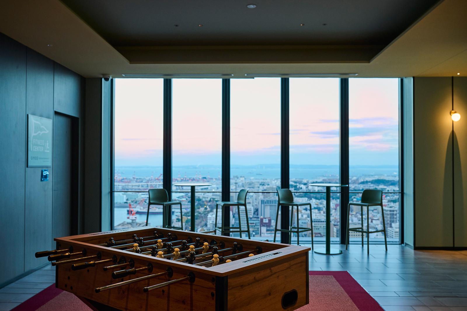 窓辺には、テーブルサッカーやビリヤードなど卓上ゲームが楽しめるスペースも