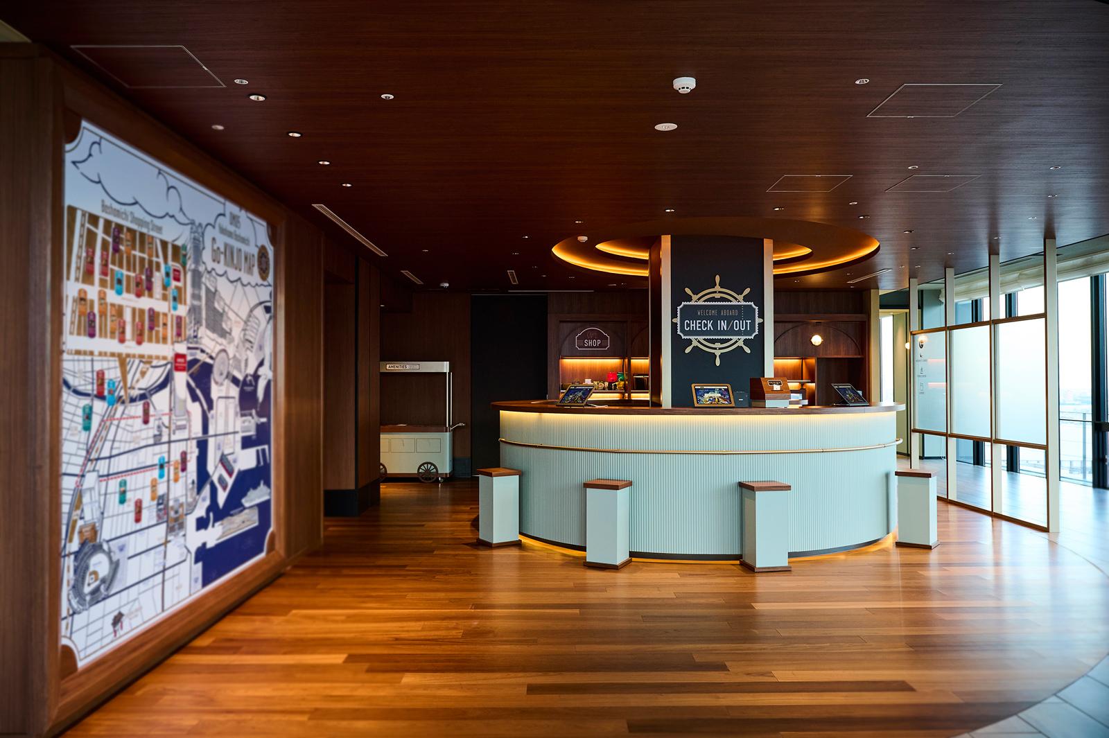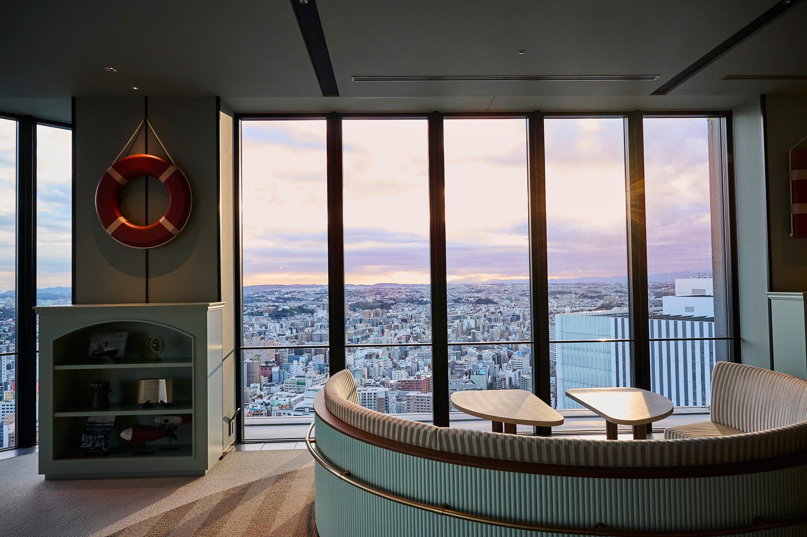 操舵室から着想を得たレセプションや、浮輪を模した「OMO」のロゴなど、船を思わせるモチーフもそこかしこにあり、まるで空に浮かぶクルーズ船に乗り込んだような気分に。