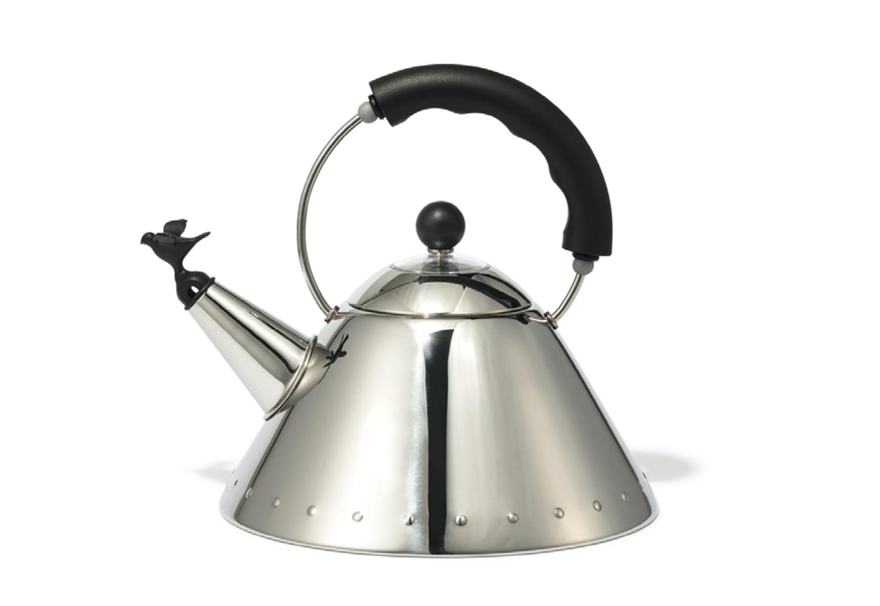 1985年にアメリカの建築家でデザイナーのマイケル・グレイブスによってデザインされたホイッスルケトル。お湯が沸騰すると、鳥がさえずるような音で知らせてくれる。2L ¥38,830(アレッシ/アレッシ ジャパン)