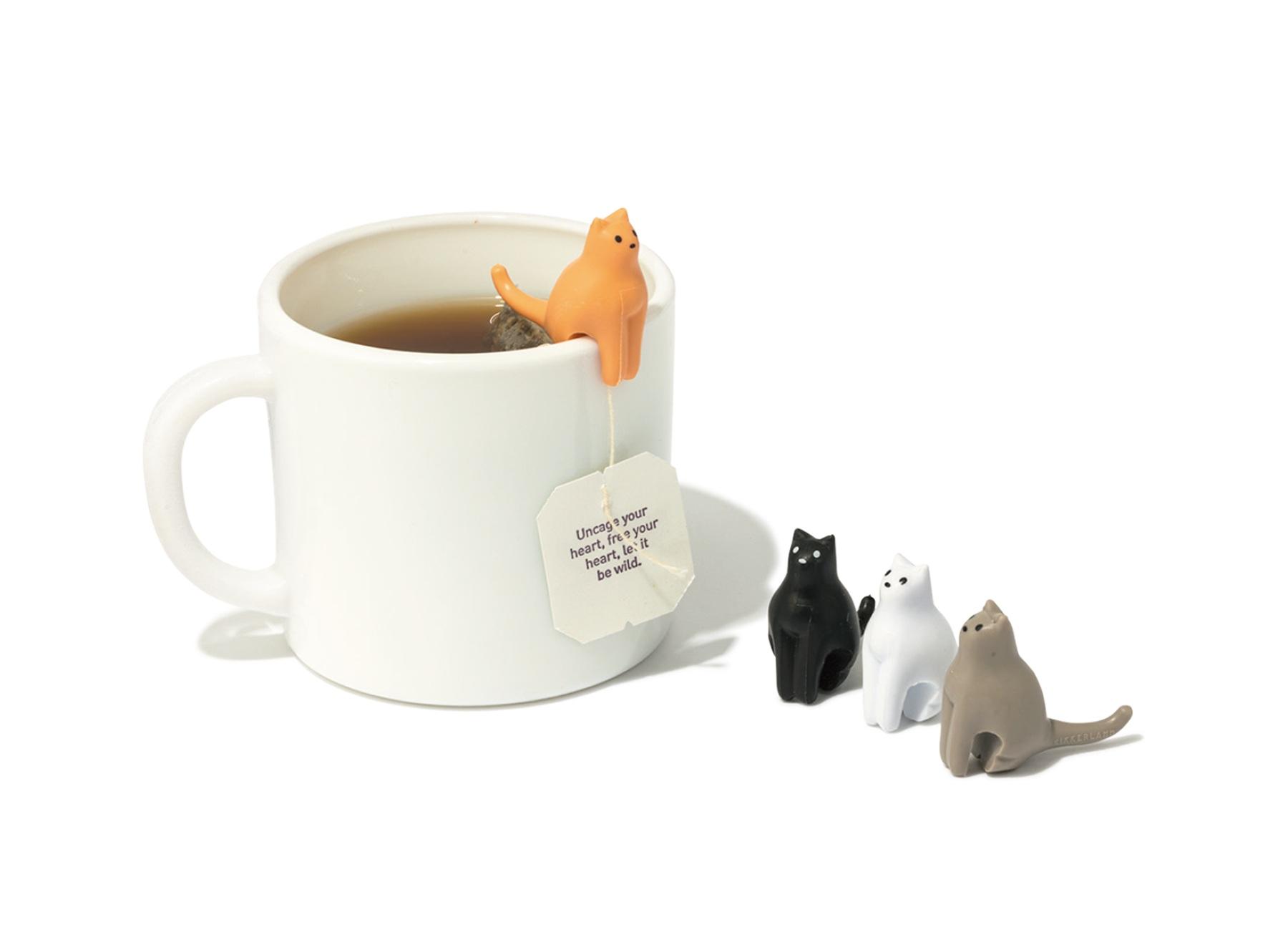 色違いの猫4匹がセットになったティーバッグホルダー。ティーバッグの紐を猫のしっぽにくるっと巻きつければ、タグがカップの中に滑り落ちるのを防ぐことができる。 ¥1,540(キッカーランド/DETAIL)