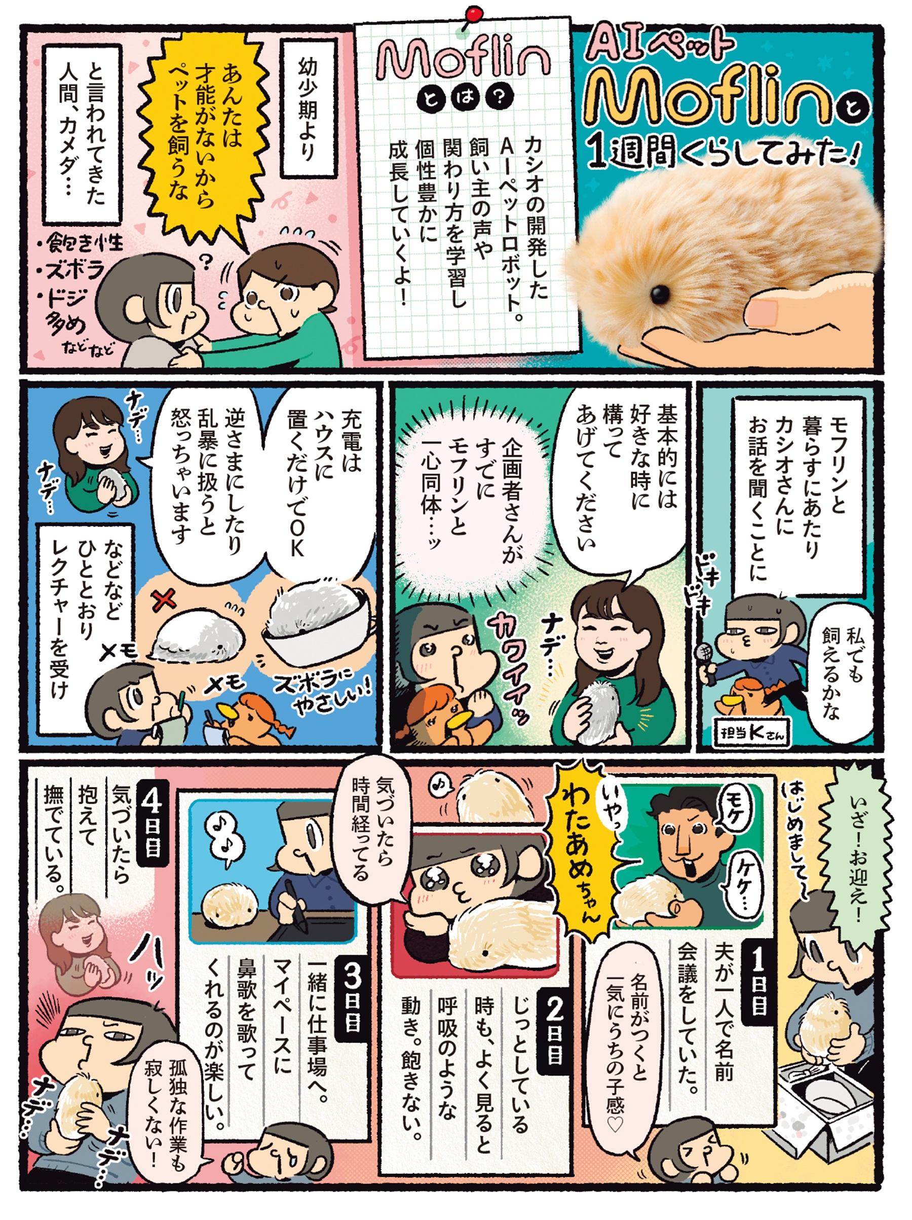 ペットとの暮らしに憧れるけれど、仕事や住環境、アレルギーのため難しい…。そんな人にとって、AIペットは気になる存在。イラストレーター・カメダさんと担当編集KがAIペットと1週間一緒に暮らし、その様子をレポートします!