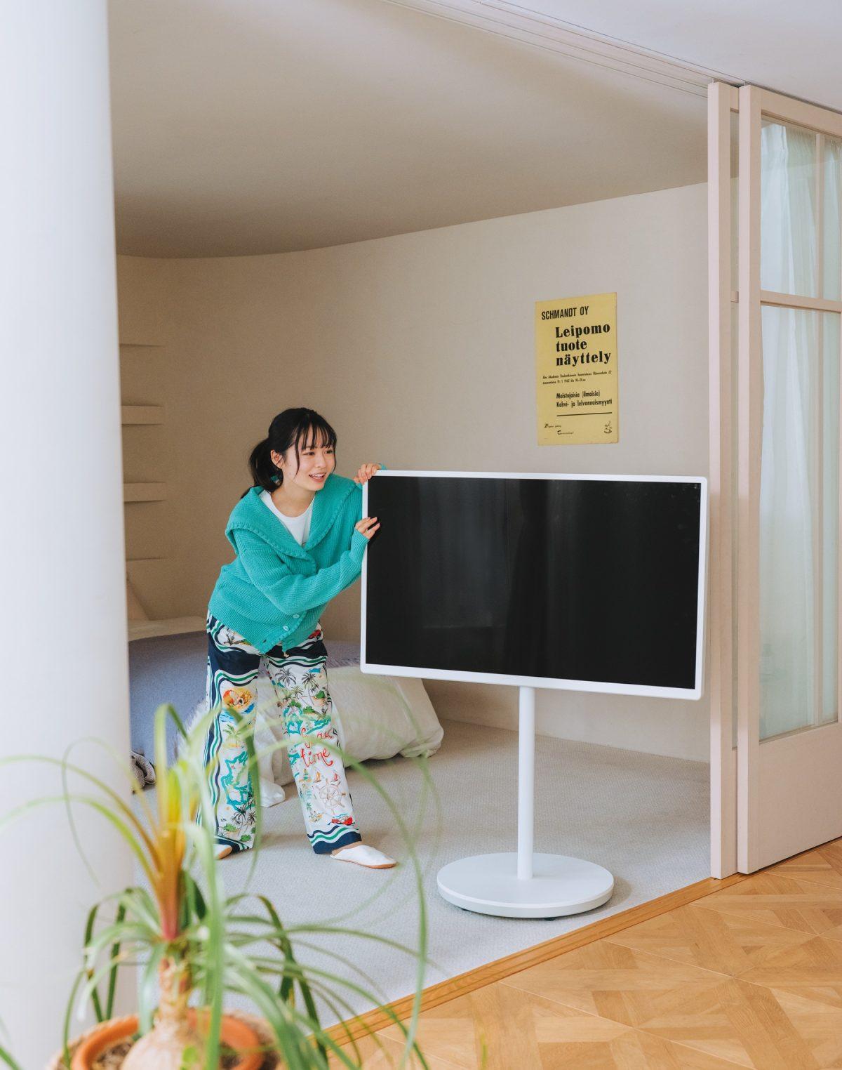 Riko’s Comment「キャスター付きで移動も楽チン。テレビ台も不要で、部屋も広々。好きな場所でくつろぎながらテレビを見られるのは夢のよう」
