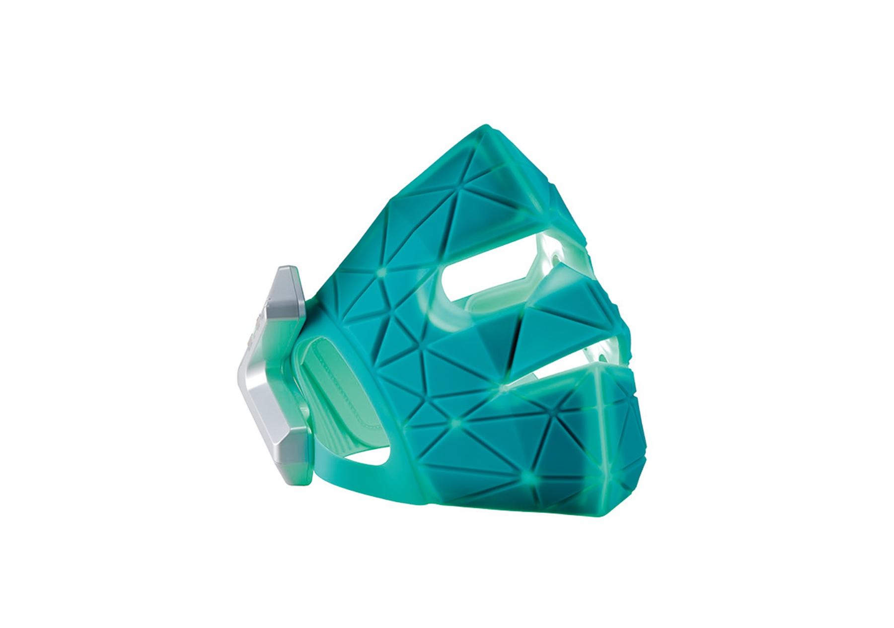 リフト×美肌。2大悩みをケアする完全コードレスのマスク型美顔器。片側5つのEMS電極で狙った表情筋に効率的なアプローチ。肌と光源の位置を均一に保ち、パワームラの少ない青緑と赤の2色のLEDの光が、肌の明るさや透明感を導く。「美顔器のパイオニアによる長年の研究で、人の顔の筋肉特性に合わせたEMS刺激が狙うべき筋肉にしっかり届く!」(サリーさん)。 ¥77,000(ヤーマン TEL. 0120-776-282)