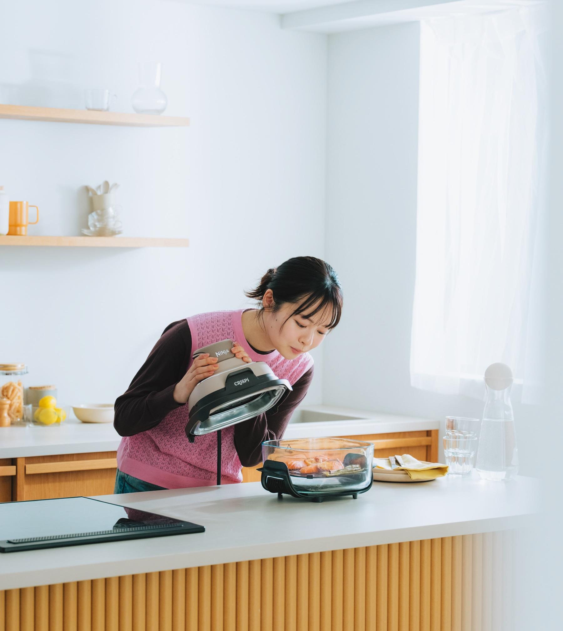 家電ライフスタイルプロデューサー・神原サリーさん、家電ライター・田中真紀子さん、芸能界イチ家電に詳しい女優・奈津子さんの3人が、時短×ヘルシーな食生活が叶ういたわり調理家電を選出。俳優の莉子さんがお試ししてくれました。