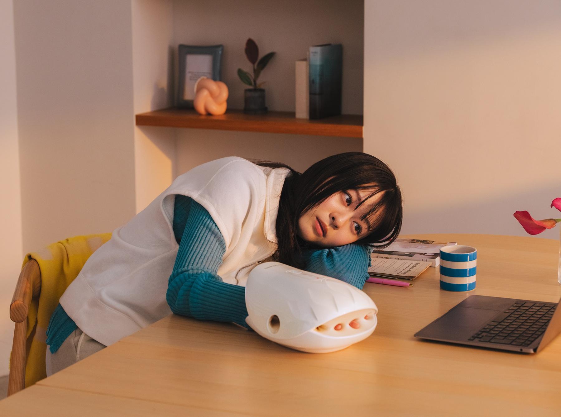 Riko’s Comment「手がむくみやすいタイプなので、指が伸びる感覚が気持ちいい~。ヒーターの温かさも相まって癒されるし、リラックスできる」