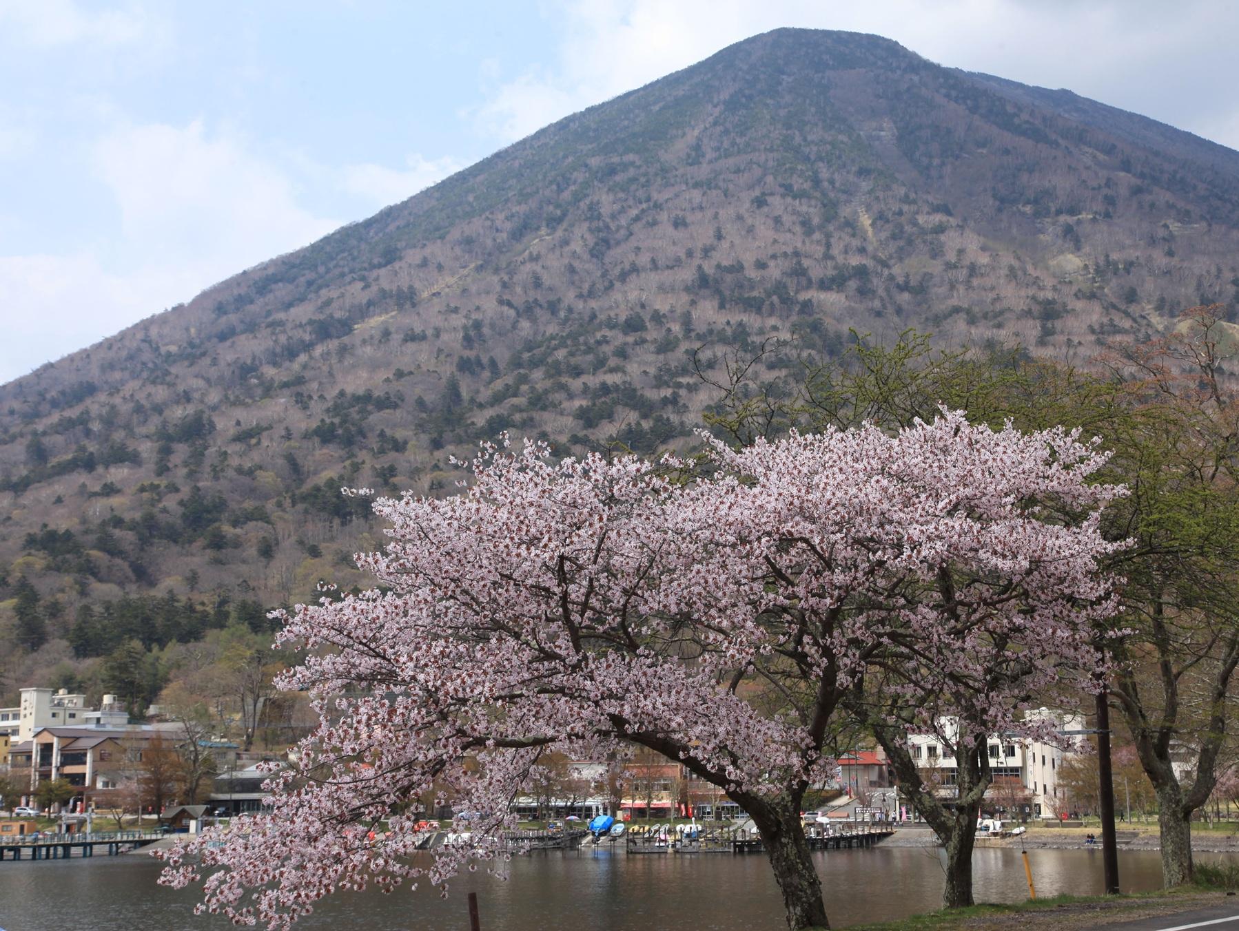 桜×男体山×中禅寺湖の絵画のような構図を拝める。