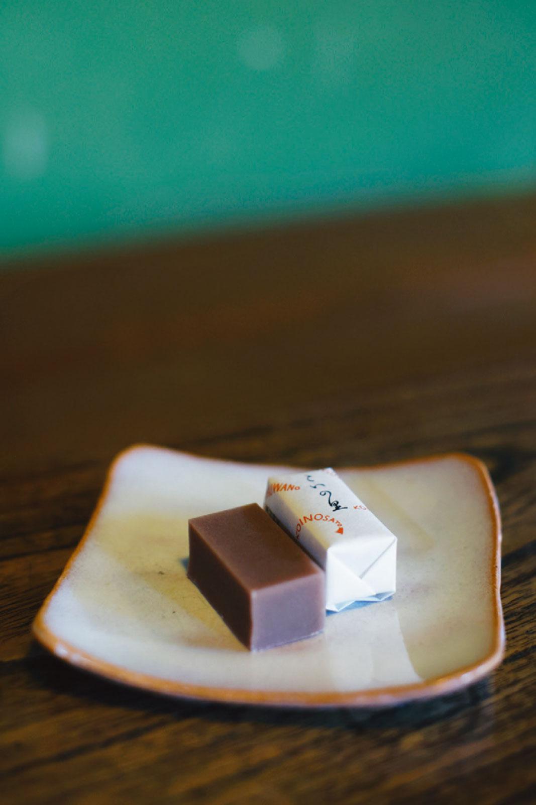 長さ15cmくらいある大きめな和菓子ですが、片手に持ってパクパク食べるのがスタンダードなのだとか! また口溶けの良い小さな羊羹〈こいの里〉は、モダンな和菓子として人気。
