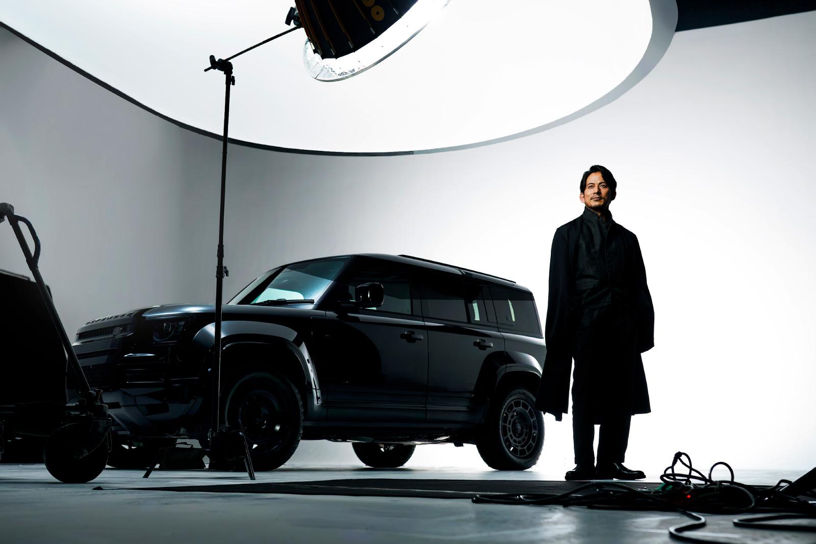 自身の愛車も「DEFENDER」だという俳優の岡田准一さんと全パーツを黒で統一した「DEFENDER OCTA BLACK」
