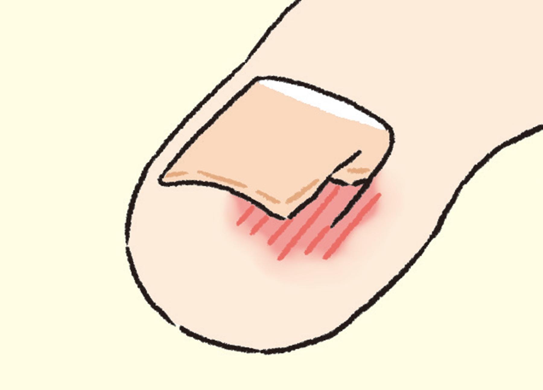 爪を短く切りすぎて、指先の皮膚や爪床(爪の下面が接している皮膚の部分)が露呈している状態。痛みや化膿を引き起こしやすい。